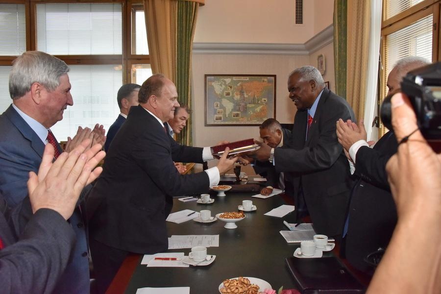 Во время беседы, проходившей в теплой, дружеской атмосфере, Г.А. Зюганов подчеркнул, что КПРФ связывают с Компартией Кубы и кубинским народом братские отношения и выразил восхищение мужеством и выдержкой, с которыми он в течение десятилетий отражает империалистическую блокаду и всевозможные провокации против Кубы. Геннадий Андреевич заверил кубинских друзей в том, что КПРФ и впредь будет поддерживать кубинский народ в его героической борьбе.