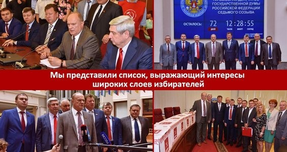 «Мы подготовили свои списки, - продолжил Геннадий Андреевич, - которые впитали прежде всего широкие настроения избирателей, настроения государственно-патриотических сил, нашего народно-патриотического блока. И состав участников этих списков характеризует нашу программу и представление граждан о серьезной выборной кампании».