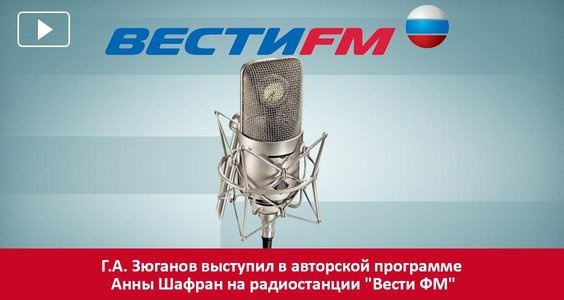 В четверг, 7 июля, Председатель ЦК КПРФ Г.А. Зюганов выступил в авторской программе Анны Шафран на радиостанции "Вести ФМ". В течение часа лидер коммунистов ответил на ряд вопросов ведущей и радиослушателей, касающихся важнейших вопросов внешней и внутренней политики.
