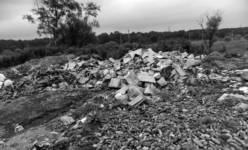 Для проверки информации депутат Ю.Г. Касецкий выехал на место событий и стал свидетелем шокирующей картины. Прямо в лесу, в трехстах метрах от границ животноводческой фермы ФГУП «Дальневосточное», образовалась огромная свалка. Чего здесь только не оказалось: сотни полиэтиленовых мешков с кустами роз, навалы битого стекла с теплиц, несметное количество бумажной и целлофановой упаковки, а еще… горы тепличных огурцов и помидоров.