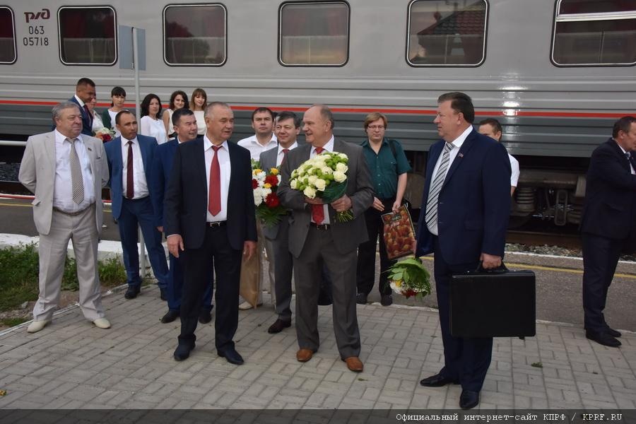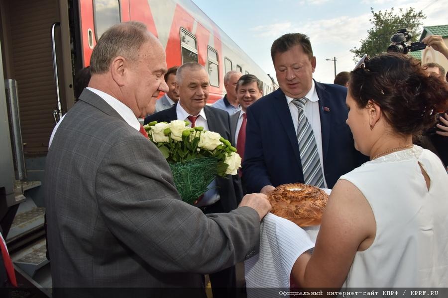 Лидера КПРФ коммунисты Республики Марий Эл с хлебом и солью встретили на станции Шелангер около шести часов утра. Геннадий Андреевич посетил Храм Рождества Иоанна Предтечи, который расположен рядом с железнодорожной станцией (при строительстве этого храма помогало объединение «Звениговское»).
