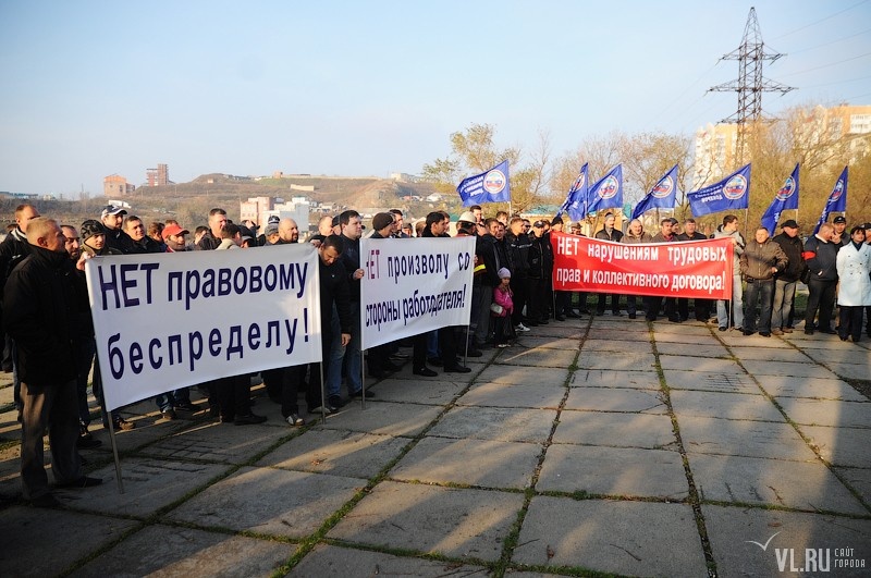 Сегодня, 4 октября, работники ПАО «Владивостокский морской торговый порт» вышли на митинг в сквере имени Анны Щетининой приморской столицы в защиту своих трудовых прав. Всего на мероприятие пришло почти 250 человек. Как рассказали журналистам представители профсоюза, 13 сентября 2016 года руководство ВМТП сократило докеров-механизаторов контейнерного терминала с нарушением трудового законодательства. По их мнению, сокращение штата является фиктивным. «Исключив из штатного расписания должность «Докер-механизатор комплексной бригады погрузо-разгрузочных работ», ВМТП ввёл в штатное расписание должности «Портовый рабочий» и «Машинист крана». При этом трудовые обязанности по новым должностям совпадают с обязанностями докеров-механизаторов и входят в характеристику работ профессии «Механизатор (докер-механизатор)», - пояснил председатель профкома Александр Толкачёв.