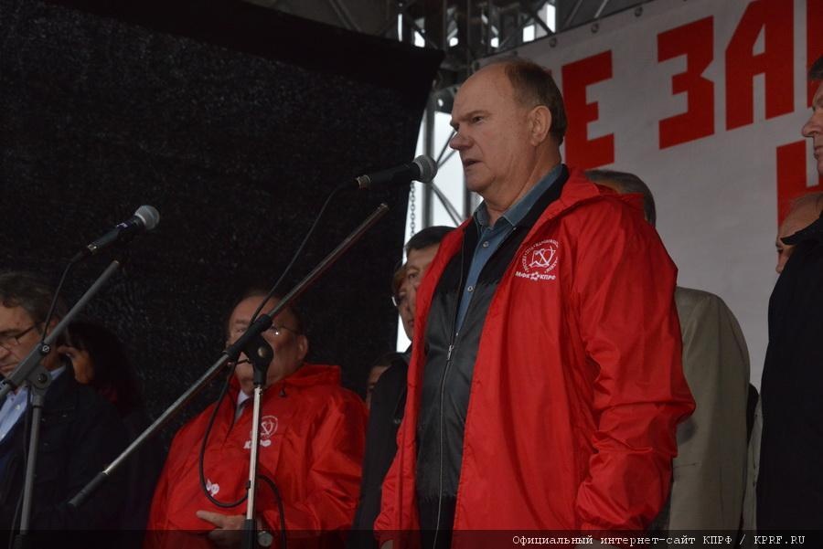 «Как специалист и ученый хочу вам сказать: в истории не было такого прецедента. Во время правления нынешней партии власти Россия из 10 лет 6 лет находится в тяжелом финансово-экономическом кризисе. Эта партия довела страну от 3,5% роста ВВП до его падения на 4%. И чтобы подобная партия удержалась бы у власти – таких прецедентов нет! Притом, что на 18 часов 18 сентября 2/3 граждан страны не пришли на выборы. Люди проголосовали ногами, считая унизительным то, что у партии власти нет реальной программы, что она прячется за чужими микрофонами и партиями-фальшивками», - сделал вывод лидер КПРФ.