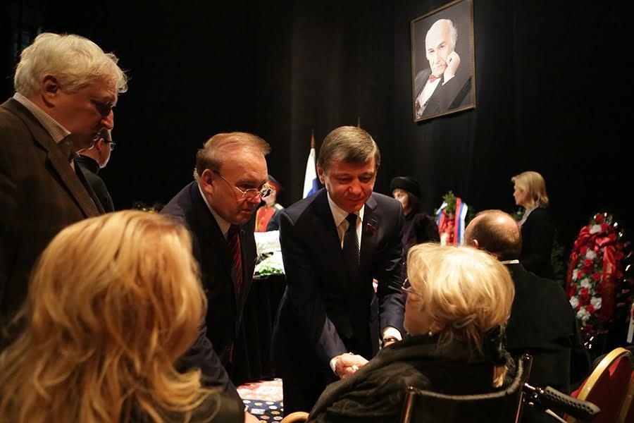 В церемонии прощания приняли участие представители КПРФ во главе с заместителем Председателя ЦК партии Д.Г. Новиковым и Председателем ЦКРК Н.Н. Ивановым. Они почтили память артиста, от имени лидера КПРФ Г.А. Зюганова выразили глубокие соболезнования его супруге Иветте Евгеньевне.