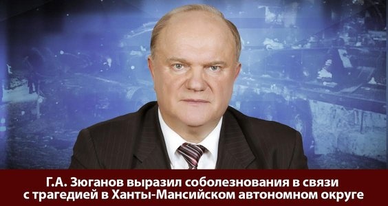 Лидер КПРФ Г.А. Зюганов выразил соболезнования в связи с трагедией, произошедшей 4 декабря в Ханты-Мансийском автономном округе.
