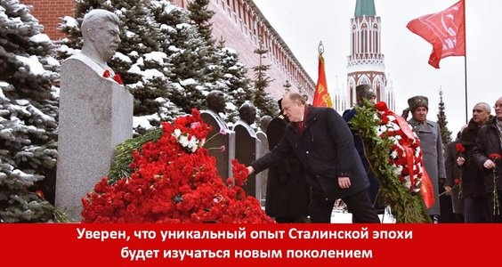 Я уверен, что этот уникальный опыт Сталинской эпохи будет изучаться новым поколением. Мы идем навстречу 100-летию Великого Октября, 100-летию Февраля и 100-летию начала Гражданской войны. Сегодня всякие мерзавцы и русофобы-антисоветчики пытаются снова разжечь недоверие внутри общества. Но это уже не получает поддержки. Страна прозрела, страна понимает, страна осознает, что только в годы Советской власти с нами считался весь мир. Только в годы Советской власти мы имели ракетно-ядерный стратегический паритет. Только в годы Советской власти каждый имел работу, спокойное и уверенное будущее, бесплатное образование и медицинское обслуживание, достойно нес высокое Знамя Октября, Знамя Ленина-Сталина.