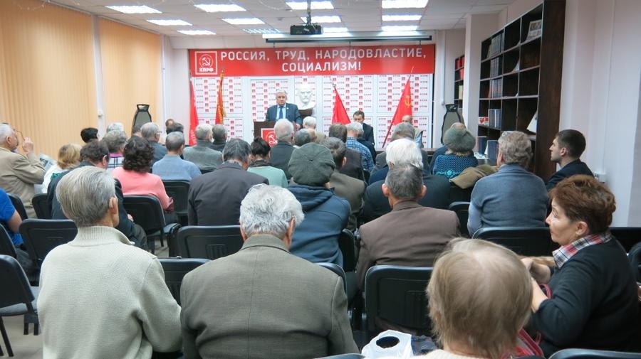 Поскольку большую часть аудитории составляли члены общественной организации «Дети войны», Н.В. Арефьев подробно остановился на деятельности этой всероссийской организации. Призвал почаще заходить на её сайт, где можно ознакомиться со всеми новостями и документами. Отметил, что «дети войны» всегда будут в поле зрения КПРФ. Рассказал о четырёх проектах федерального закона о «детях войны», предлагавшихся с 2012 года КПРФ, но так и не принятых к рассмотрению единороссовским большинством Думы. Ну, не хотят власти, сказал он, изыскивать 230 миллионов рублей, которые необходимы на реализацию предусмотренных законом льгот для граждан страны, родившихся в 1928 – 1945 годах. Правда, последний вариант закона прошёл-таки полугодовую правительственную экспертизу (заключение, понятное дело, отрицательное), внесён в Думу 6 октября 2016 года и имеет шансы быть рассмотренным депутатами в январе – феврале будущего года, заключил выступающий.