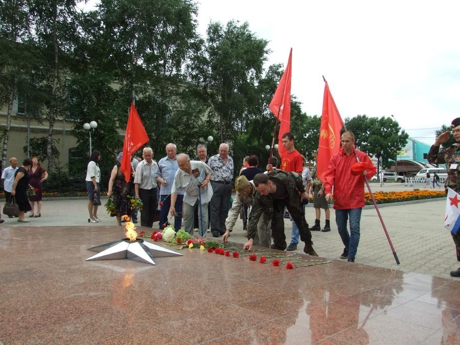 Несмотря на прошедший в Приморском крае тайфун и объявленное ЧС, в районах, по которым проходил маршрут, участники экспедиции не отказались от своих планов. В этот же день в городе Уссурийске прошел торжественный митинг на мемориале «вечного огня». Участников экспедиции приветствовал секретарь Уссурийского городского Комитета КПРФ В.В. Алексеев, выступили ветеран ВОВ, почетный гражданаи Уссурийского городского округа В.И. Кузьмин, первый секретарь Комитета ЛКСМ РФ Е.И. Ляшенко. После проведения траурного митинга экспедиция вместе с первым секретарем Уссурийского ГК КПРФ А.П. Харитоновым направились на Уссурийское кладбище где в этом году неравнодушные жители г. Уссурийска передали информацию о захоронении 10 летчиков, участвовавших в Корейской войне.