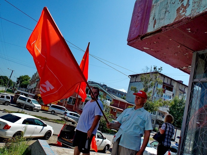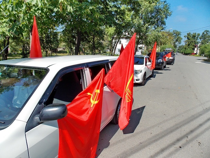 Кандидаты от КПРФ, коммунисты и сторонники партии, работая на предупреждение массовых фальсификаций в городе Артеме, на минувшей неделе провели две акции под лозунгом «За честные выборы!». О пикете, состоявшемся во вторник перед зданием городской мэрии и теризбиркомом, уже был подготовлен наш фотоотчет. А вчера, 19 августа, колонна автомобилей, украшенная флагами КПРФ, проследовала от микрорайона шахты «Амурская» до района трикотажной фабрики, чтобы поднять боевой дух избирателей, а также открыто заявить властям о том, что наши кандидаты всерьез настроены на победу и никакие ее ухищрения и грязные технологии не смогут помешать очевидному итогу.