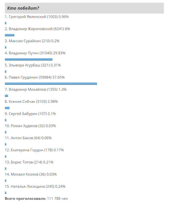 Так на страничке Рейтинг кандидатов в президенты проголосовало на настоящий момент 111 788 человек.