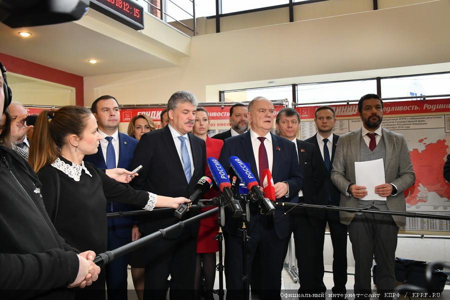 27 января в перерыве III (январского) Пленума ЦК КПРФ Председатель ЦК КПРФ Г.А. Зюганов и народный кандидат в Президенты РФ П.Н. Грудинин выступили перед журналистами.