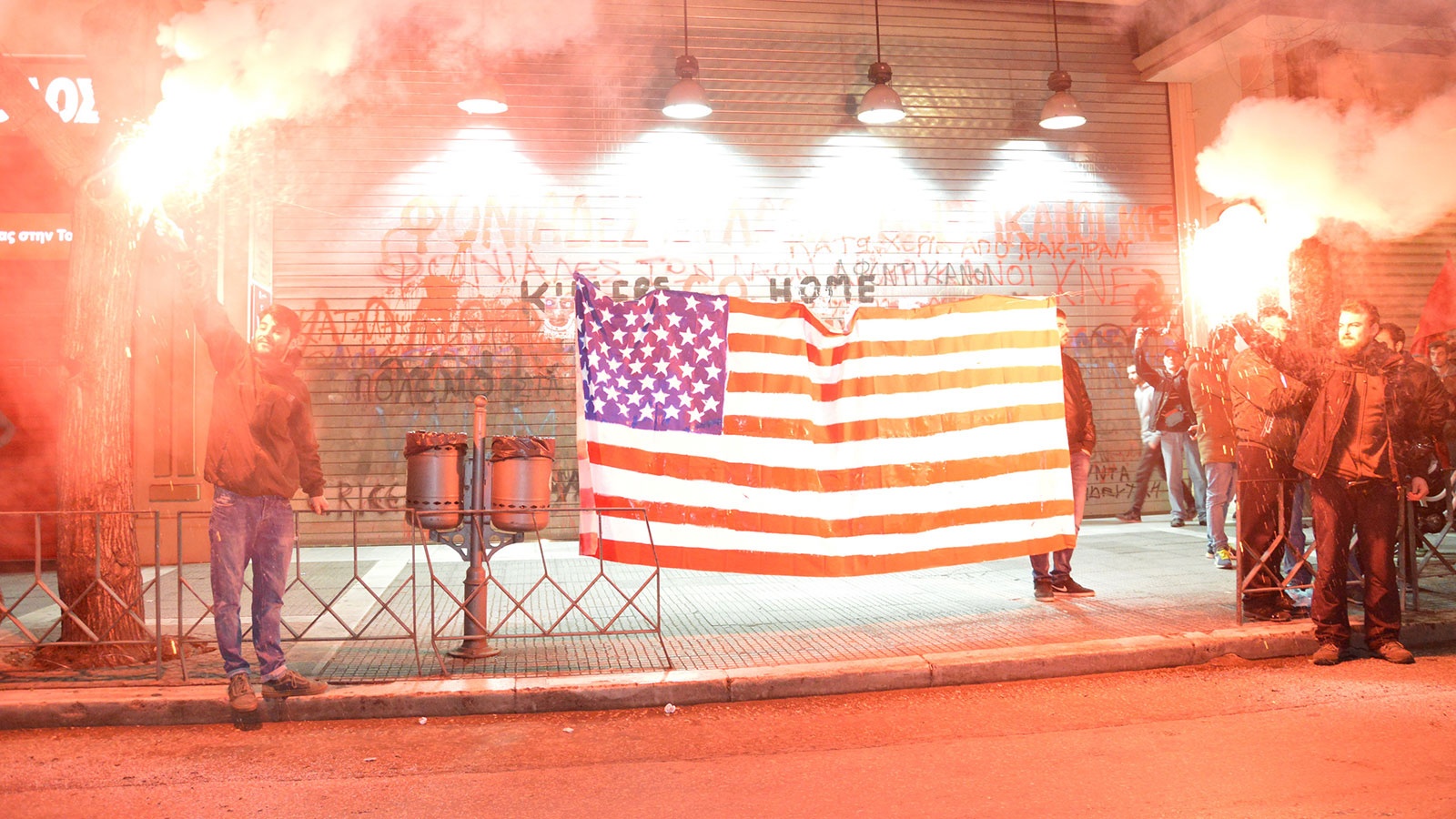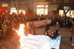 У стен американского консульства молодёжь КМГ с помощью впечатляющего воя сирен войны и звуков бомбардировок, раздирающих воздух, продемонстрировали варварство и смерть, которую сеют империалисты, а также силу решительного народа, который на деле может свергнуть власть. Они подожгли американский флаг, скандируя:«Никакого подчинения империализму, единственной сверхсилой являются народы»!