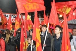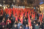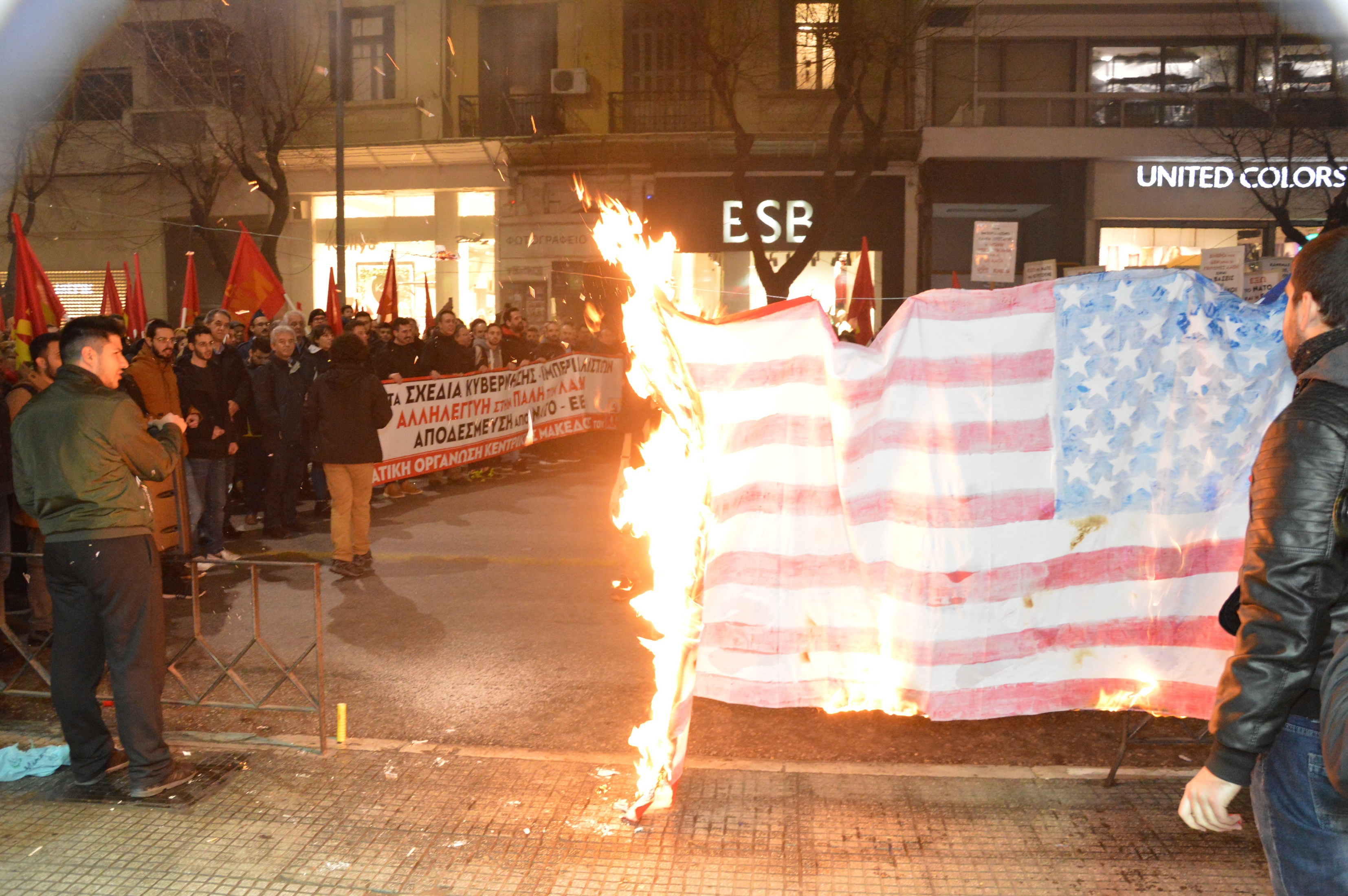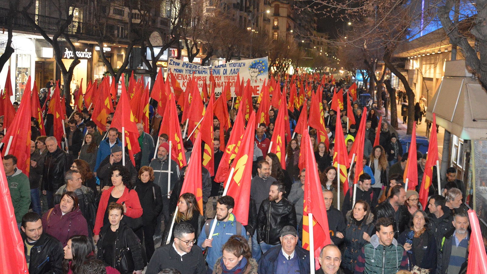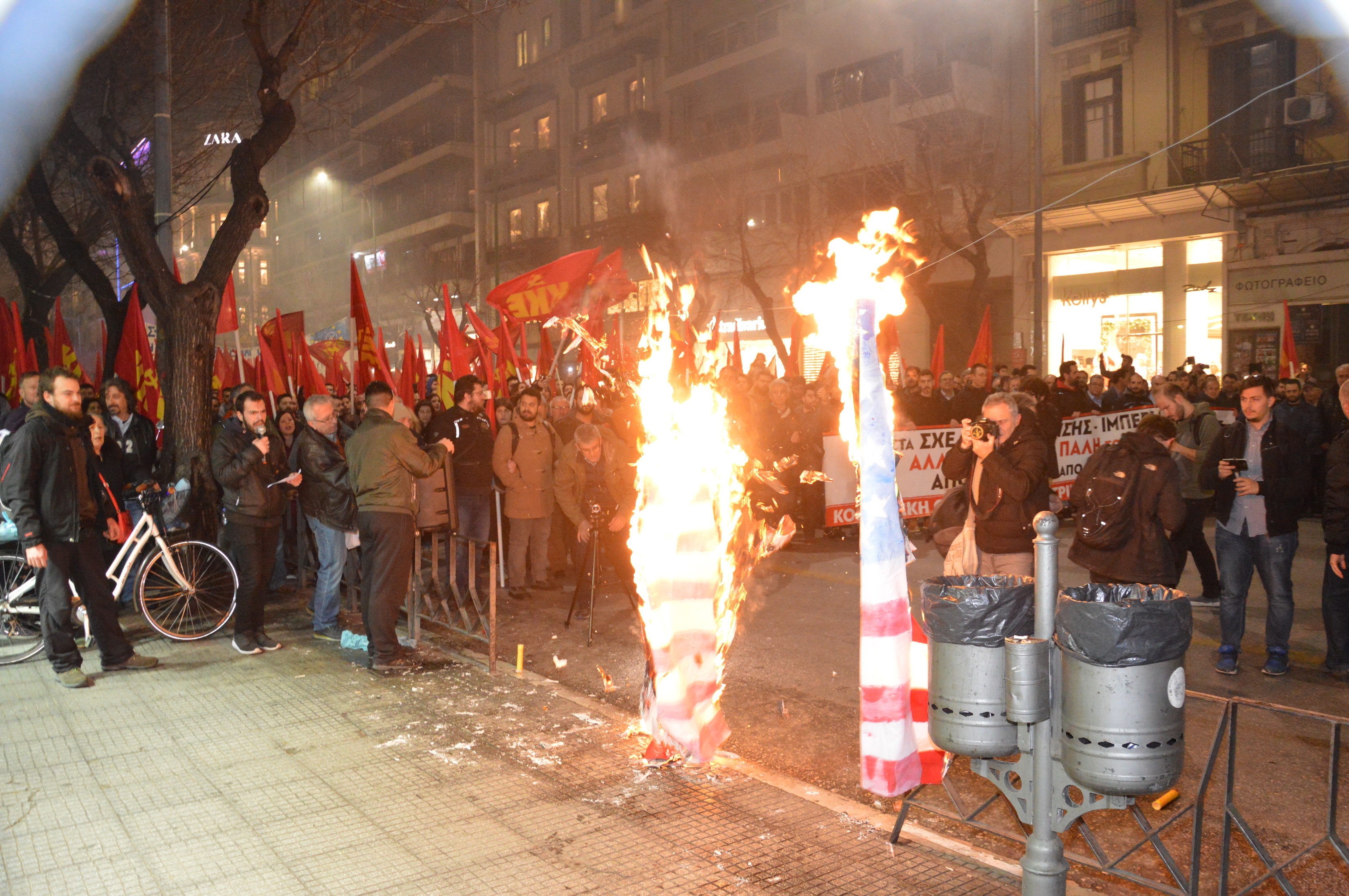 После митинга состоялось массовое шествие к американскому консульству в Салониках. В ходе шествия тысячи митингующих, держа в руках баннеры и флаги КПГ, скандировали лозунги, обвиняющие империалистов: «Империалисты вновь делят землю, кровью народов чертят границы», а также лозунги, призывающие к сопротивлению и борьбе, такие как «Солидарность с борьбой народов против планов империалистов», «Никакого страха, никакого подчинения, с КПГ за свержение власти».