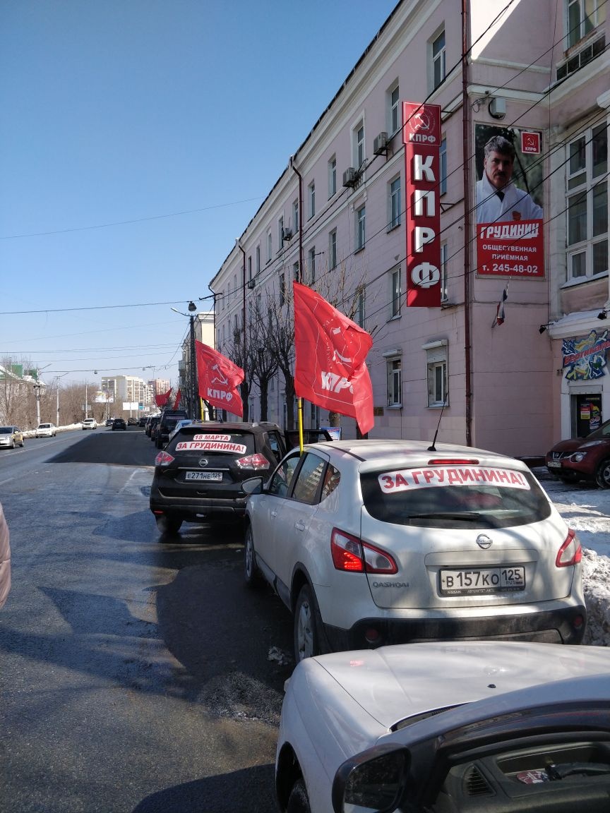 11 марта владивостокские коммунисты и сторонники КПРФ провели автопробег за честные выборы и в поддержку кандидата на должность Президента России Павла Грудинина.