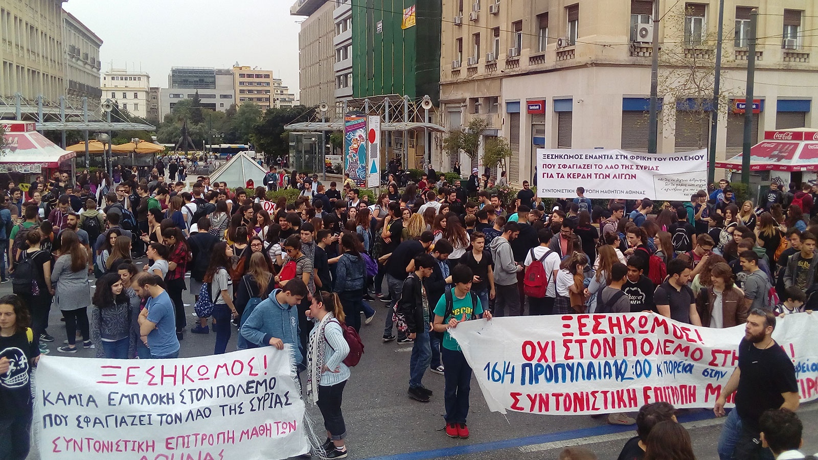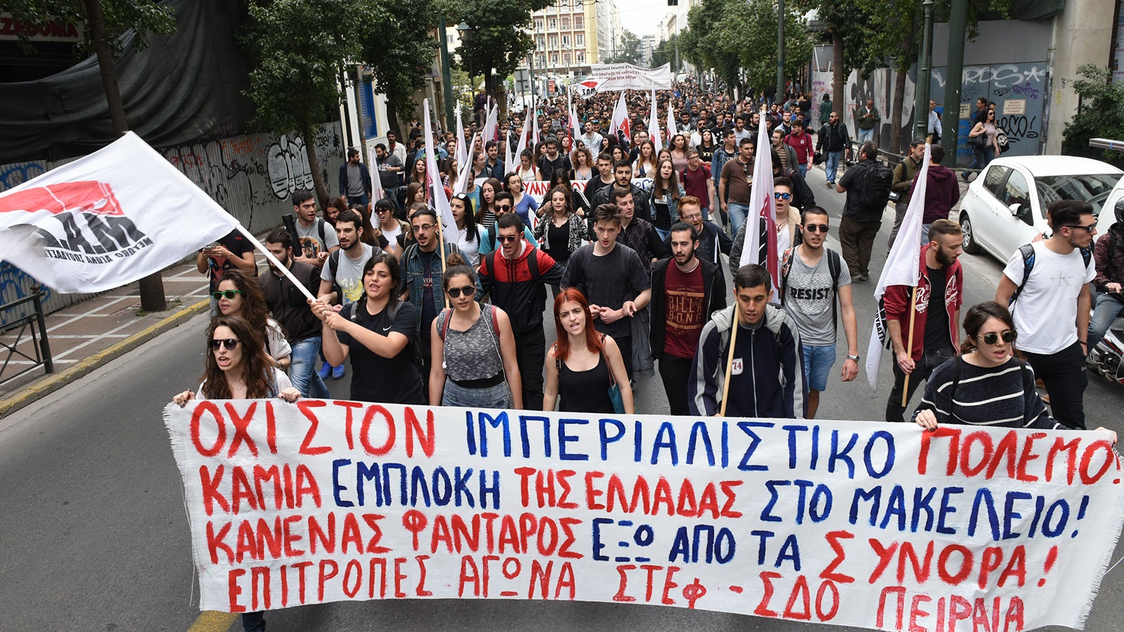 В понедельник, 16 апреля, полицейские применили слезоточивый газ и оглушающие гранаты против демонстрации студентов, учащихся и трудящихся в центре Афин у памятника Трумэну, который и пытались снести протестующие в знак осуждения американского империализма, который вместе с Великобританией и Францией, осуществил вмешательство в Сирию.
