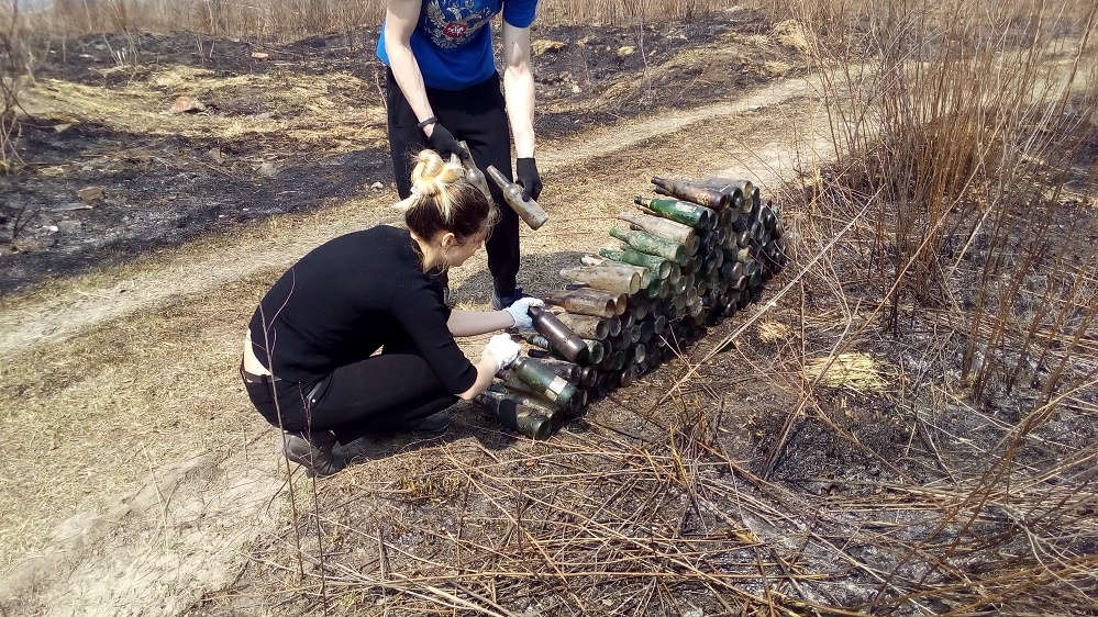 В течение нескольких часов организаторы экологической акции при активном участии местных жителей выполнили колоссальную работу, освободив от завалов мусора огромный участок леса. Горы битого стекла, тысячи стеклянных бутылок, оставленных здесь отдыхающими, были аккуратно собраны в пакеты.