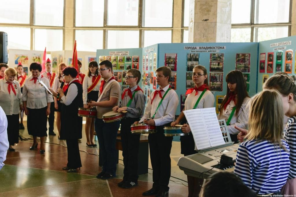19 мая 2018 года во Дворце детского творчества г. Владивостока прошла торжественная линейка, приуроченная к 96-ой годовщине образования Всесоюзной пионерской организации имени В.И. Ленина. Перед началом концерта все желающие могли ознакомиться с замечательной фото-выставкой, посвящённой жизни и деятельности Пионерской организации Приморского края. Её организовала и провела председатель краевого совета пионерских дружин Галина Васильевна Железная.
