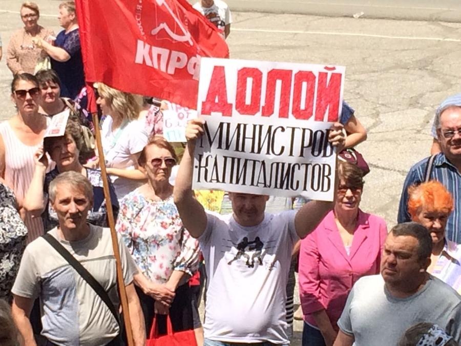 Владислав Котренко, член КПРФ, депутат Думы Партизанского городского округа, в своем выступлении высказал мысль, что пока у власти в нашей стране силы , деструктивно влияющие на развитие общества и страны в целом, до тех пор и будут продолжатся попытки и далее усугубить положение населения, которое в настоящий момент занято просмотром футбольных матчей чемпионата мира. Также выступающим было высказано мнение, что инициатива правительства по повышению пенсионного возраста, это «дымовая завеса», для других, не менее резонансных законопроектов, а именно: ограничение суточной нормы вылова рыбы, чипизация домашних животных, запрет самостоятельно продавать свое авто без посредников, повышение НДС до 20-ти % и т.д.