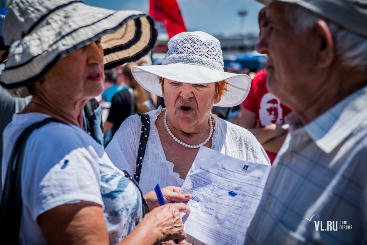 На митинге коммунисты инициировали письменный опрос, в ходе которого людей просили высказать мнение по вопросу: «Поддерживаете ли вы правительственный законопроект об увеличении возраста выхода на пенсию мужчин – на пять лет, а женщин – на восемь лет». В опросном листе каждый гражданин оставлял не просто подпись, но и паспортные данные: адрес, дату рождения. Высказались около 1800 человек. Все против. Подписи приморцев, как и жителей других регионов, будут отправлены в правительство с инициативой провести референдум против повышения пенсионного возраста.