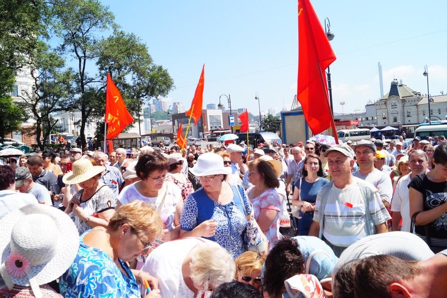 Десятки коммунистов, а после и десятки простых граждан брали слово, и каждый высказывал свое мнение, выражая крайнее возмущение и недоумение от планируемых реформ. Но Приморье не ограничилось протестом лишь во Владивостоке. Приморские коммунисты провели большую предварительную работу к проведению акции протеста, и в целом приморское краевое отделение сегодня провело митинги больше чем в тридцати городах и районных центрах края. На митинге во Владивостоке было собрано 2700 подписей по инициативе проведения референдума против повышения пенсионного возраста.