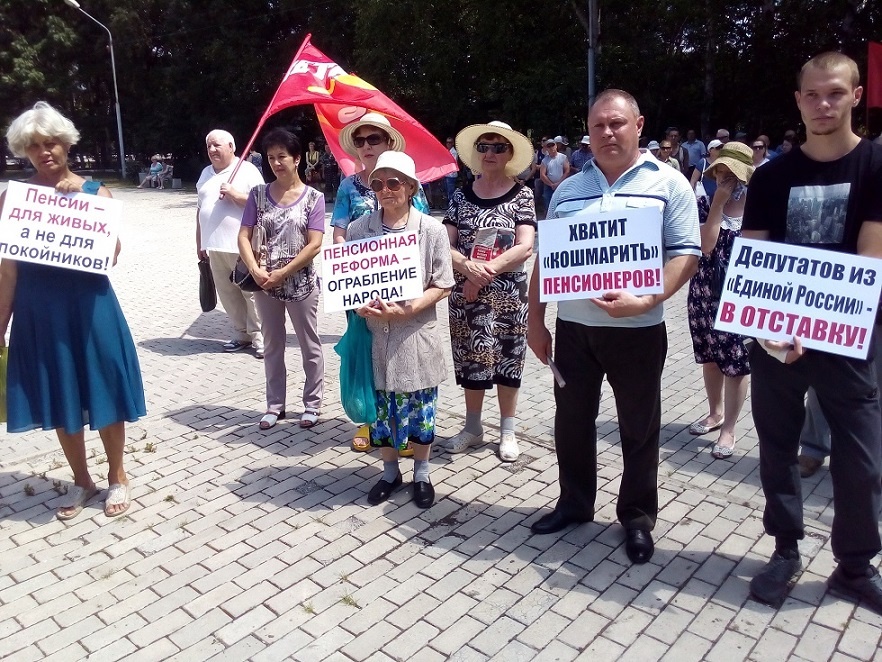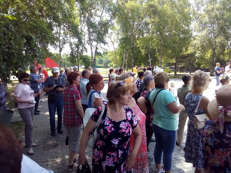Несмотря на изнуряющую жару, доходящую до 35+, и запредельную влажность, 28 июля 2018 года в городе Артеме состоялся митинг протеста против безумной, людоедской пенсионной реформы. Сотни горожан отложили свои дела и в субботний день пришли на мемориал воинам-артемовцам, погибшим в годы Великой Отечественной войны.