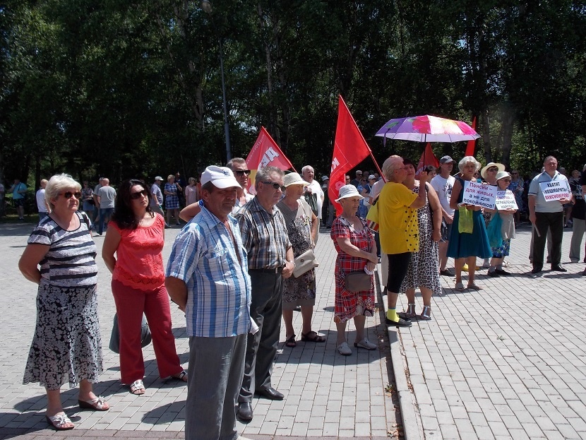 Аномальная температура вынудила организаторов митинга в лице горкома КПРФ в срочном порядке менять дислокацию мероприятия, чтобы большинство пришедших горожан смогли оказаться в тени деревьев, а не под палящим солнцем. А вот выступающим пришлось героически переносить ужасы июльского пекла.