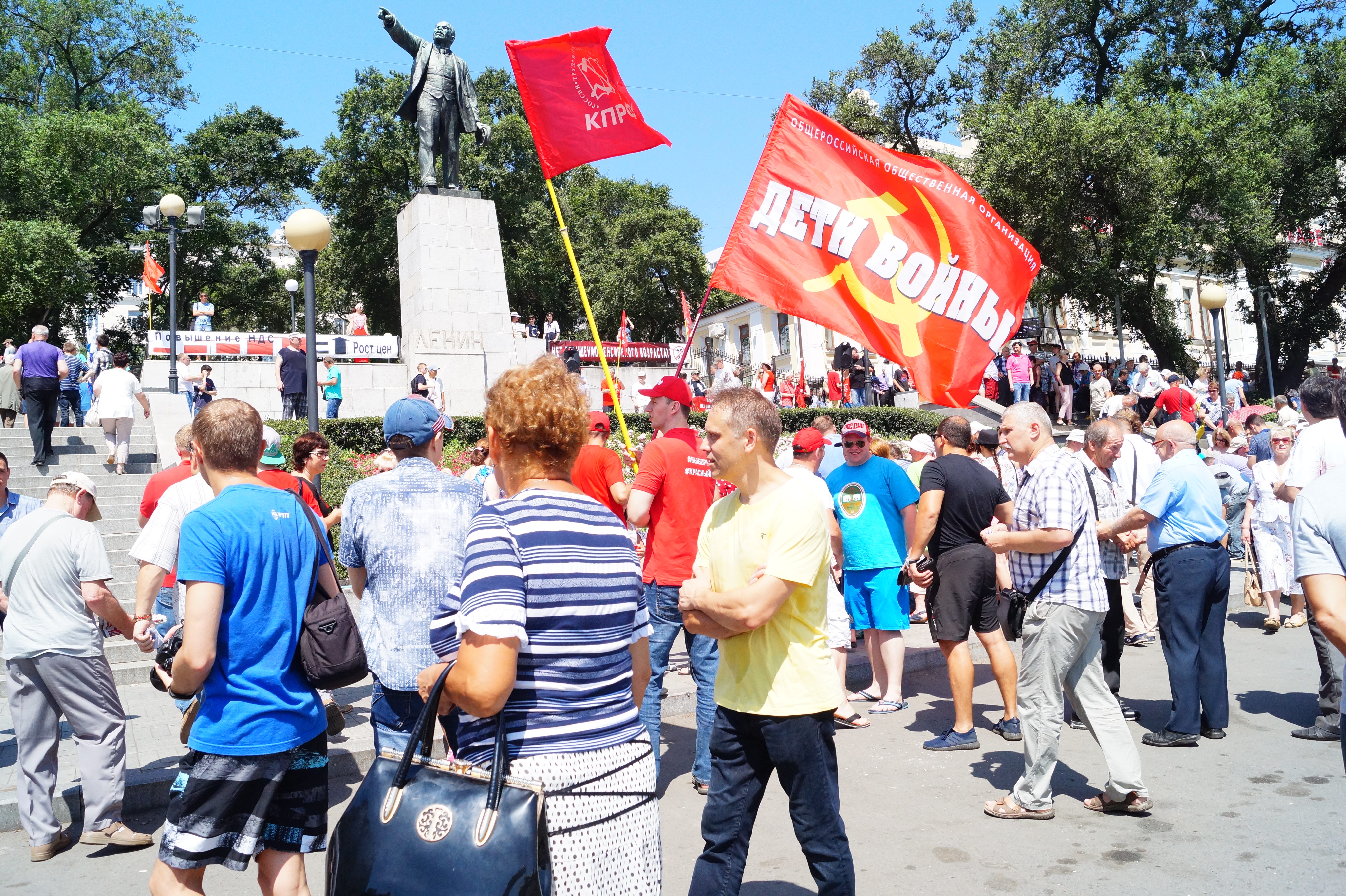 Всероссийская акция протеста 28 июля, организованная Коммунистической партией, собрала под своими лозунгами против антинародных реформ правительства, более 10 тысяч человек по всему Приморскому краю.