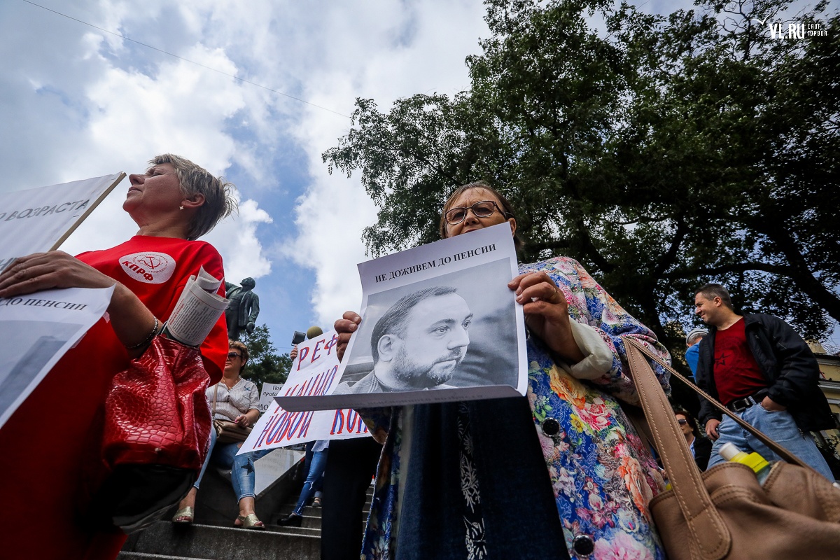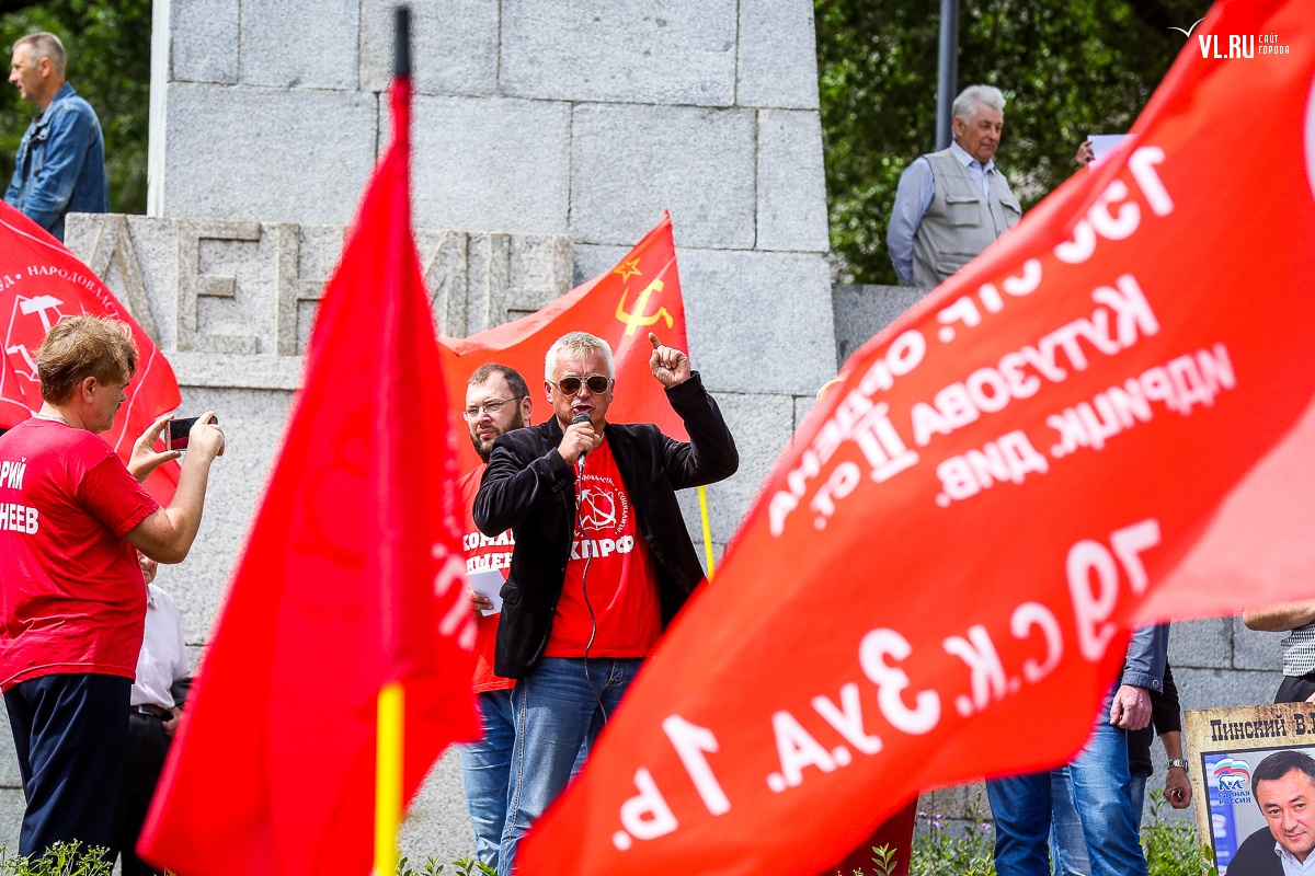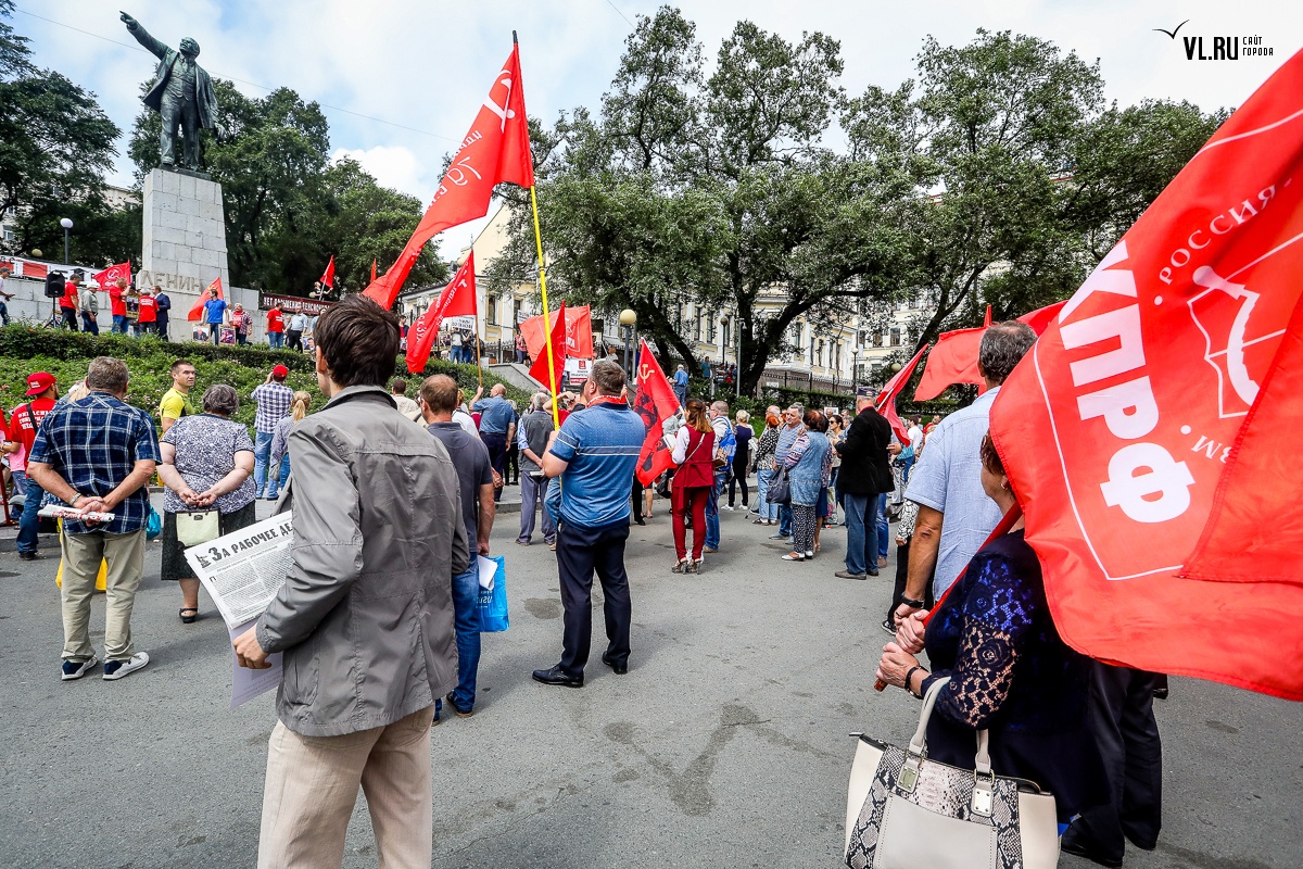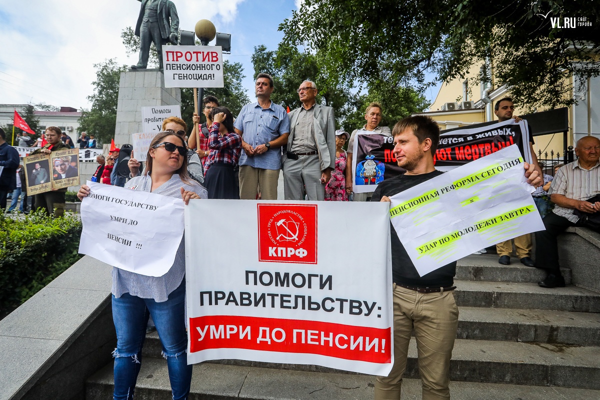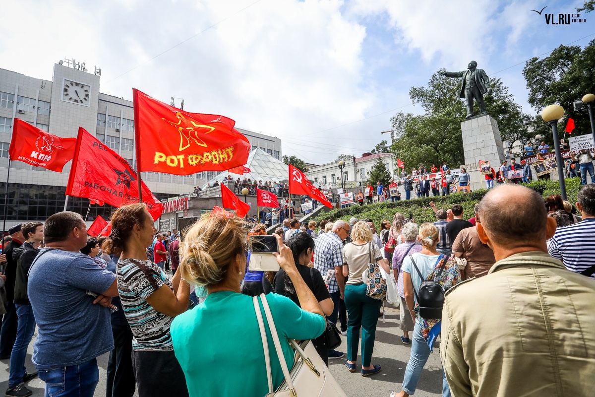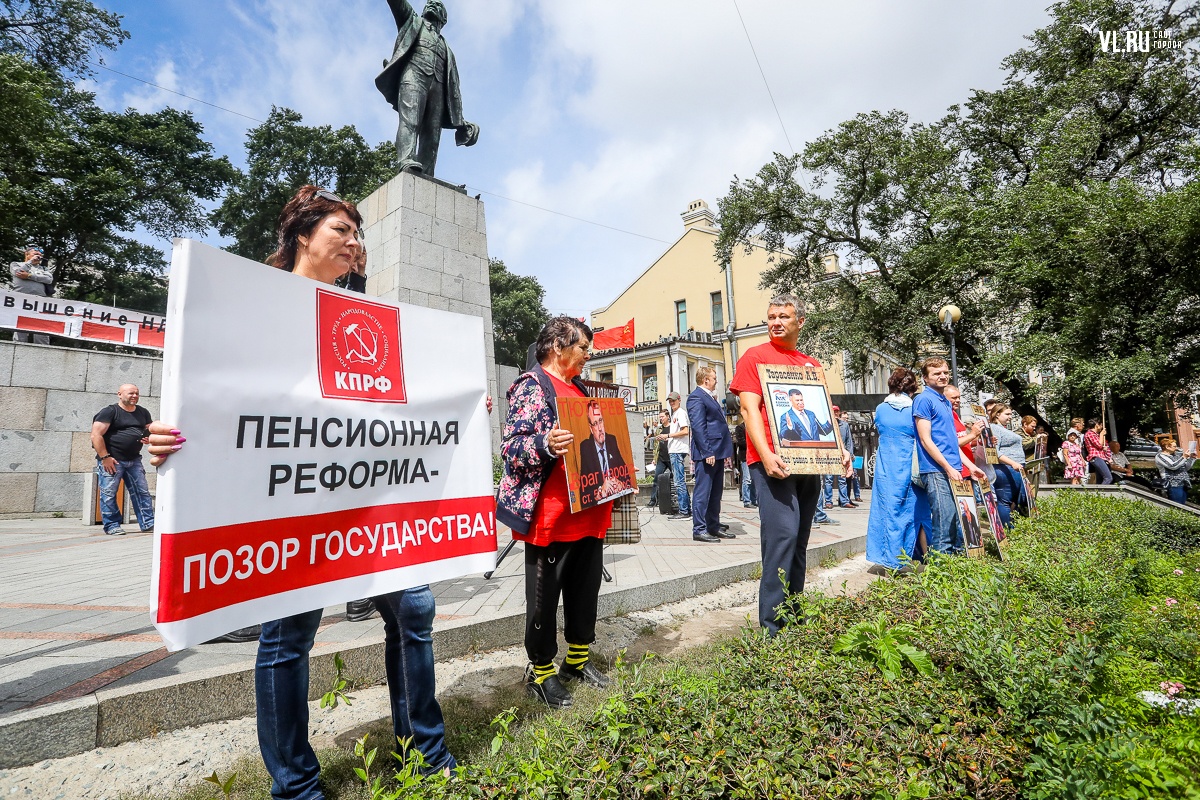 Организаторы и участники акции убеждены: пенсионная реформа − «античеловеческие преобразования». Лидер приморских коммунистов Анатолий Долгачев под памятником вождю мирового пролетариата первым взял слово и назвал правящую власть «барыгами», а российский триколор − «власовской тряпкой». Он потребовал «отправить в отставку правительство Дмитрия Медведева», «отстранить врио губернатора Андрея Тарасенко», а всех депутатов, голосовавших за изменения в пенсионной реформе, призывал «предать народному суду».