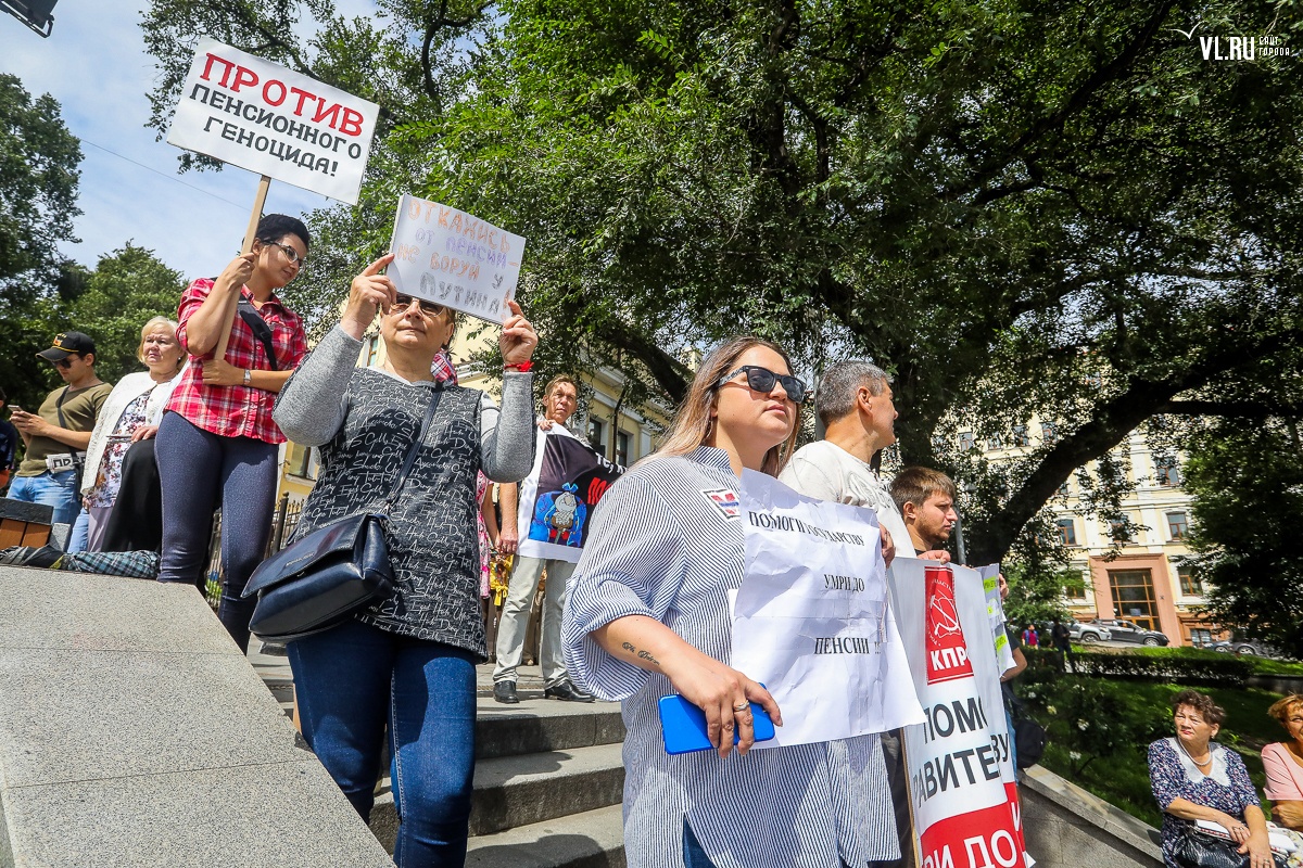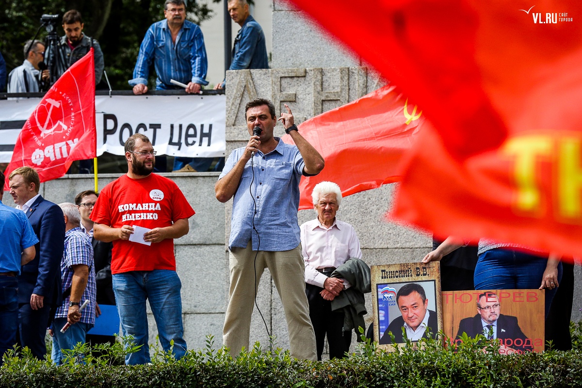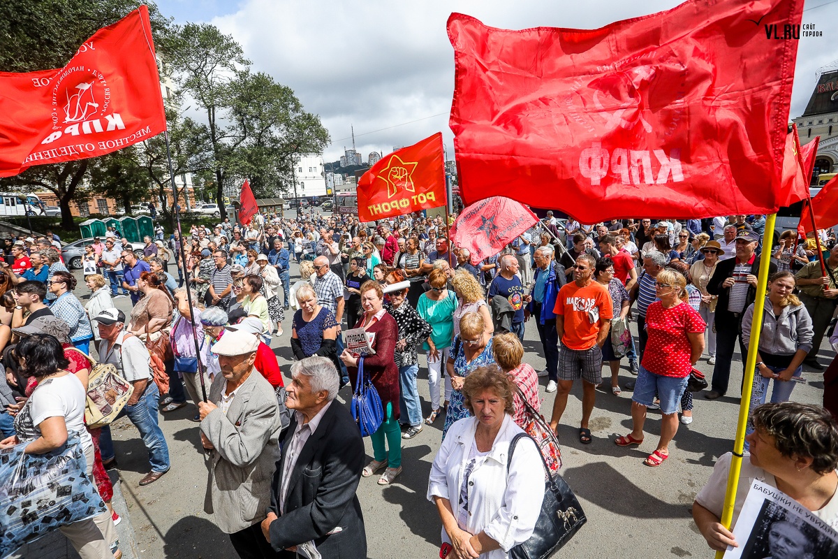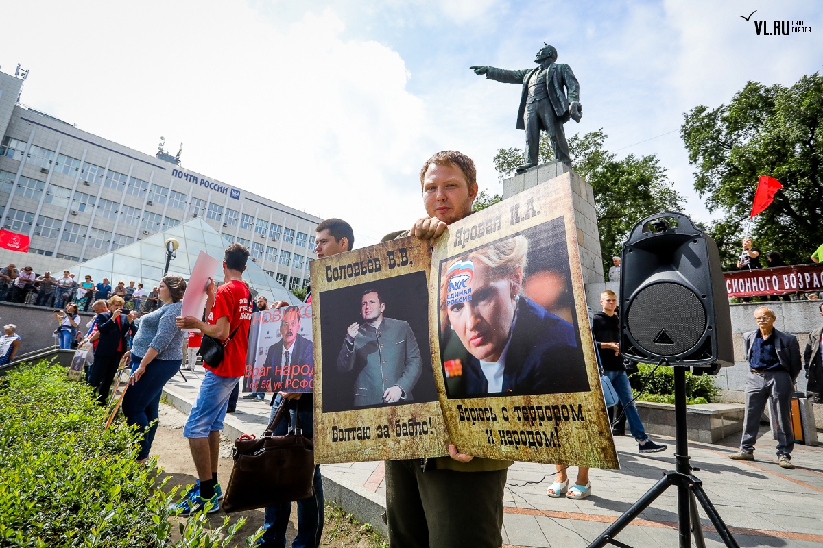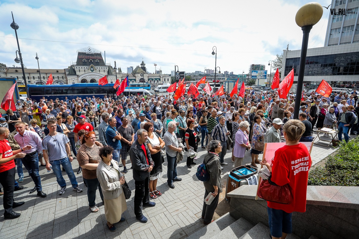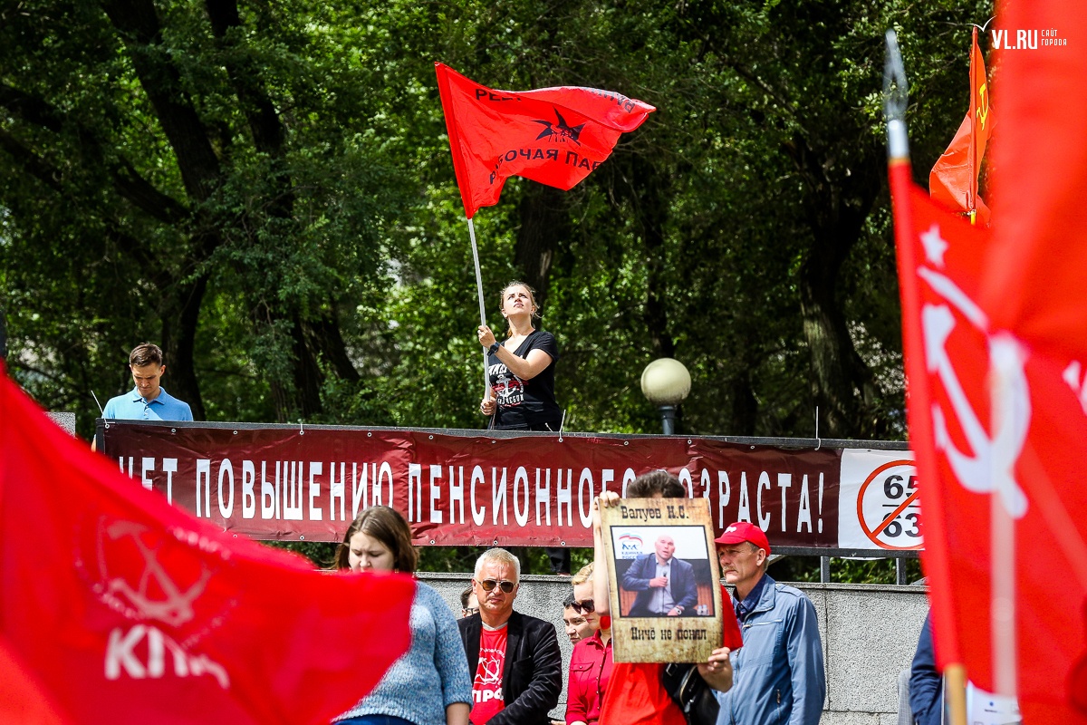 Организаторы и участники акции убеждены: пенсионная реформа − «античеловеческие преобразования». Лидер приморских коммунистов Анатолий Долгачев под памятником вождю мирового пролетариата первым взял слово и назвал правящую власть «барыгами», а российский триколор − «власовской тряпкой». Он потребовал «отправить в отставку правительство Дмитрия Медведева», «отстранить врио губернатора Андрея Тарасенко», а всех депутатов, голосовавших за изменения в пенсионной реформе, призывал «предать народному суду».
