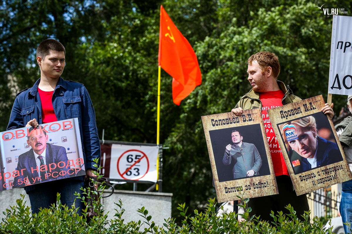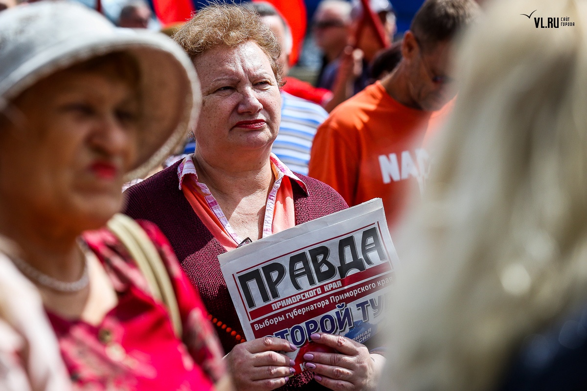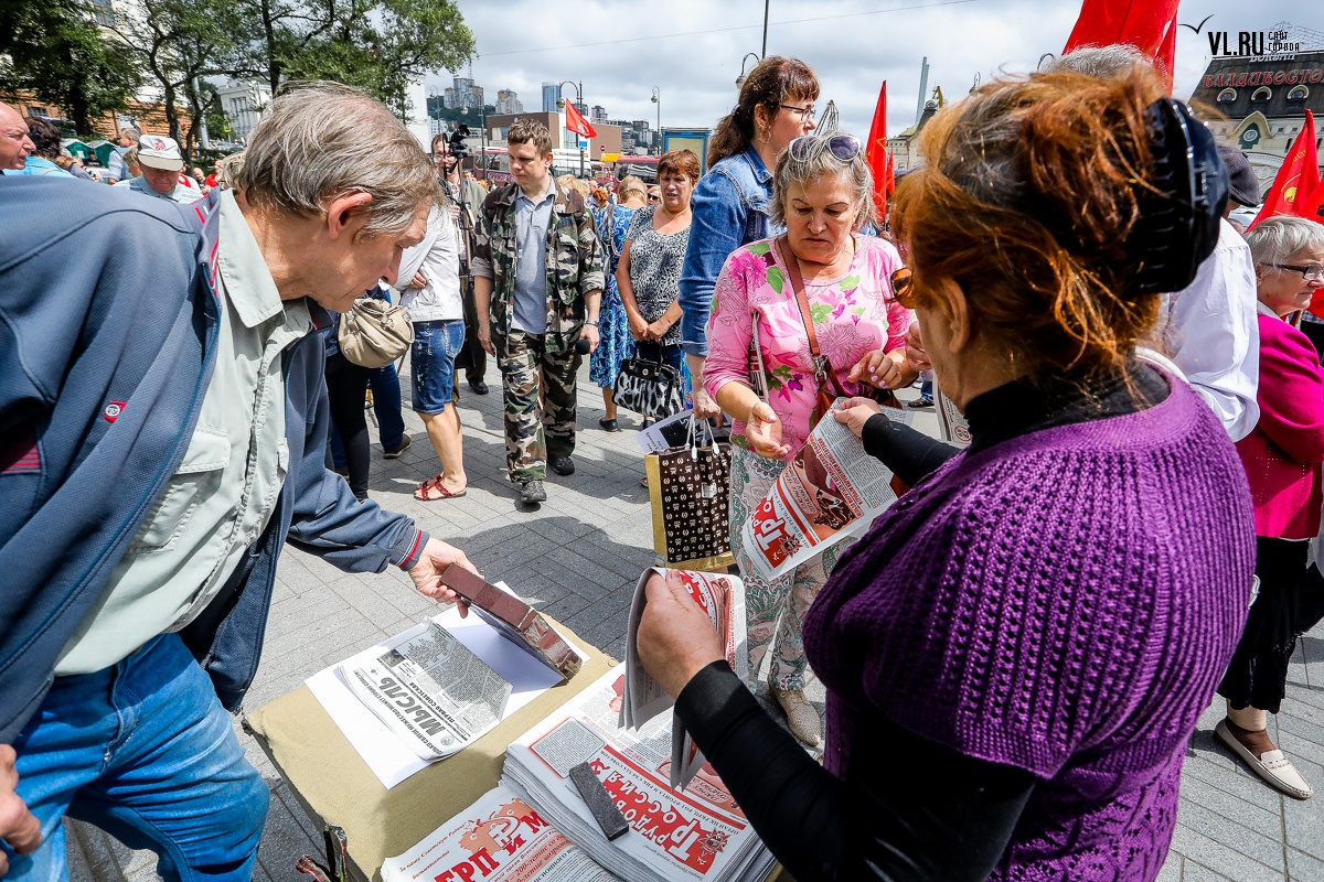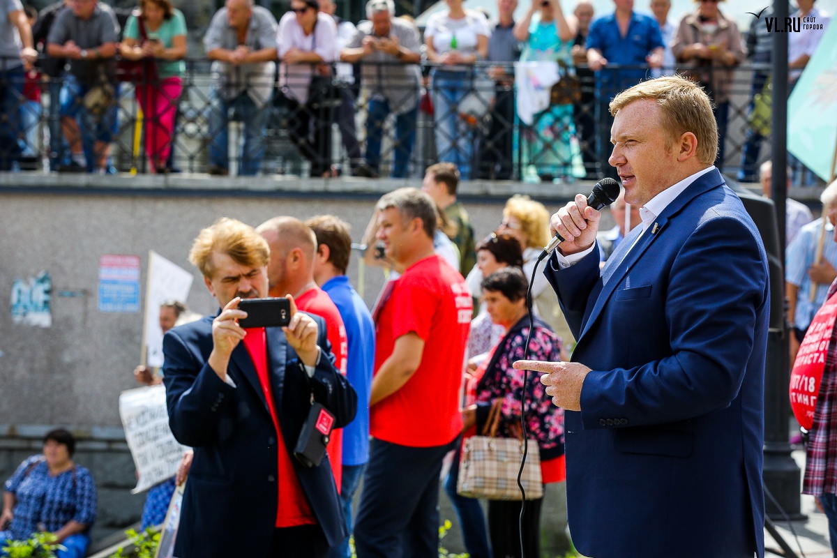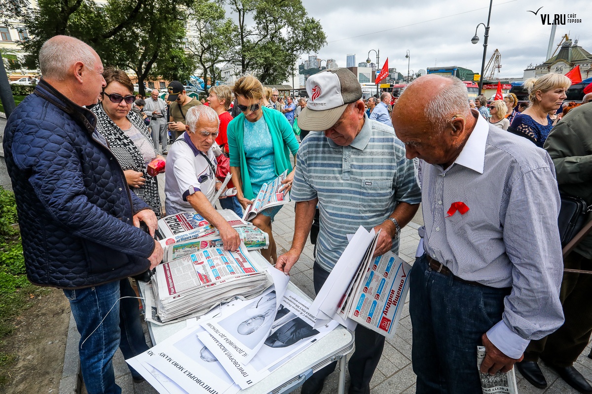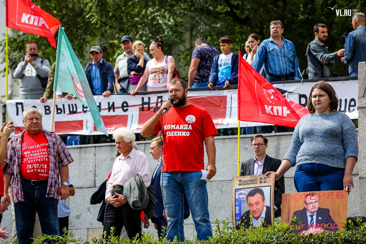 Организаторы и участники акции убеждены: пенсионная реформа − «античеловеческие преобразования». Лидер приморских коммунистов Анатолий Долгачев под памятником вождю мирового пролетариата первым взял слово и назвал правящую власть «барыгами», а российский триколор − «власовской тряпкой». Он потребовал «отправить в отставку правительство Дмитрия Медведева», «отстранить врио губернатора Андрея Тарасенко», а всех депутатов, голосовавших за изменения в пенсионной реформе, призывал «предать народному суду».