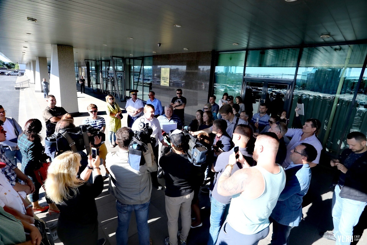 13:22: Даже после обращения депутата Государственной думы о том, что основная забастовка в 18:00, народ не расходится. На крыльце администрации и около него постоянно находятся порядка 70 человек самых разных возрастов и профессий. Проезжающие по Светланской автомобилисты поддерживают пикетчиков с плакатами и флагами гудками клаксонов.