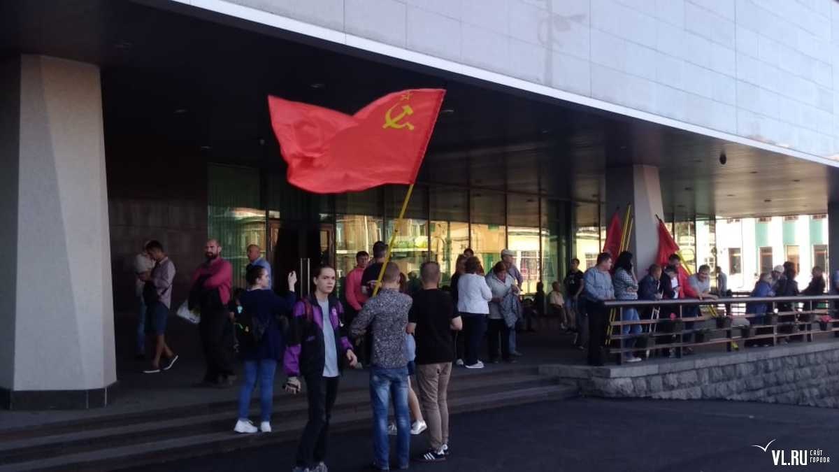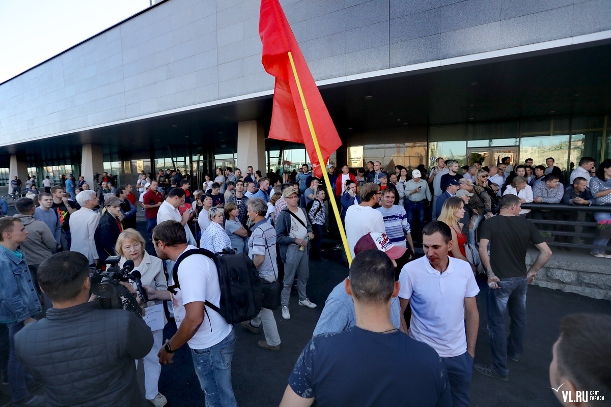18:25: Владивостокцы постепенно подтягиваются. Перед администрацией края уже около 500 человек − коммунисты с флагами СССР и КПРФ, представители штаба Навального, дети-сироты и журналисты, горжане. К акции присоединились активисты национально-патриотических сил России.