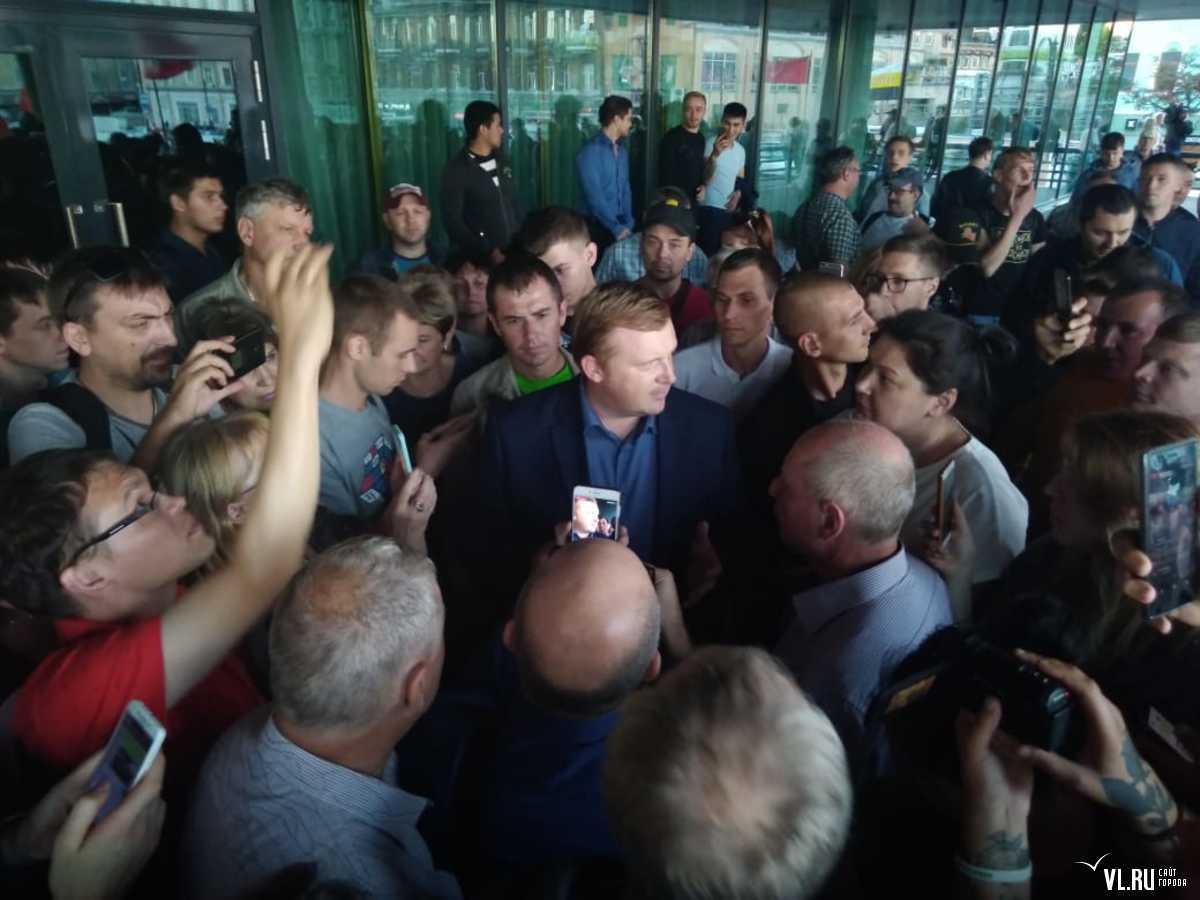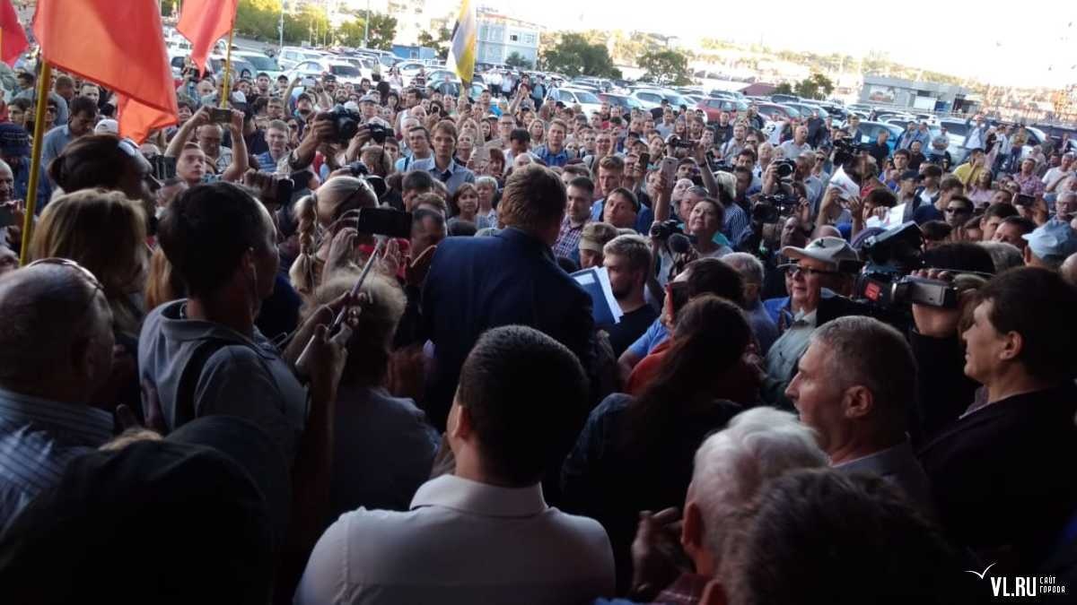 На центральной площади у здания администрации Приморского края сегодня вечером, 17 сентября, собрались сотни горожан, несогласных с результатами голосования. Люди пришли поддержать кандидата в губернаторы, коммуниста Андрея Ищенко. Встреча длилась больше двух часов. Владивостокцы и жители Приморья выразили недовольство прошедшими выборами и собрали подписи за отмену результатов подсчета голосов.