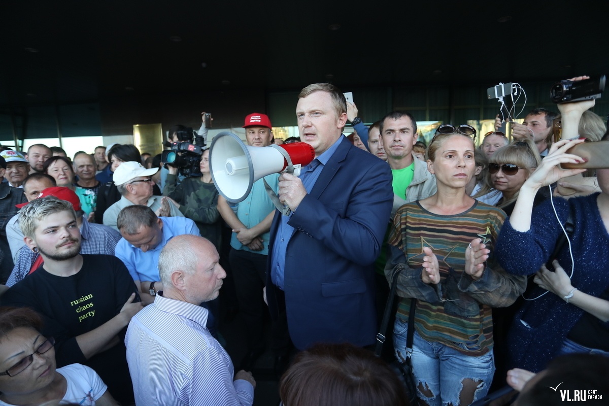 «Сегодня ночью в Приморского крае у нас с вами украли народную власть. Все мы должны объединиться и стоять на этой площади до тех пор, пока КИК не примет решение об отмене результатов выборов!», − говорит Андрей Ищенко.
