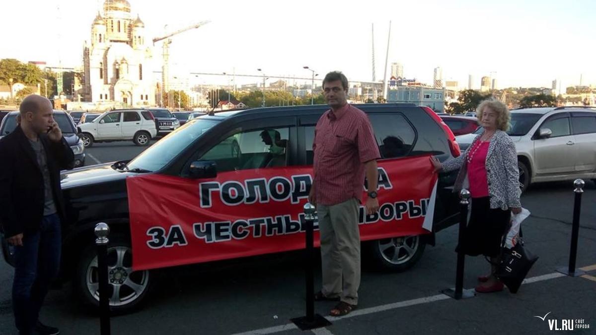 Во вторник, 18 сентября, во Владивостоке во время второго дня акции протеста за честные выборы краевой депутат от КПРФ Артем Самсонов объявил голодовку. Он расположился в машине на парковке перед зданием администрации края и требует пересмотра результатов голосования на сфальсифицированных участках.
