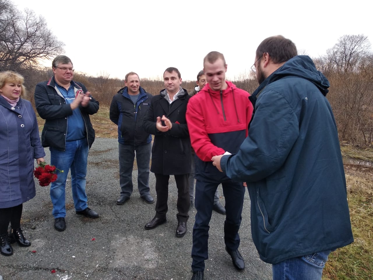 Несмотря на холодную погоду и мокрый снег, встреча прошла в теплой, дружественной обстановке. Комсомольцы прошлых лет, а ныне опытные товарищи, напутствовали молодежь из краевого отделения комсомола. Сегодня, как и век назад, эти ребята станут локомотивом социальных преобразований и передовиками строительства справедливого общества.
