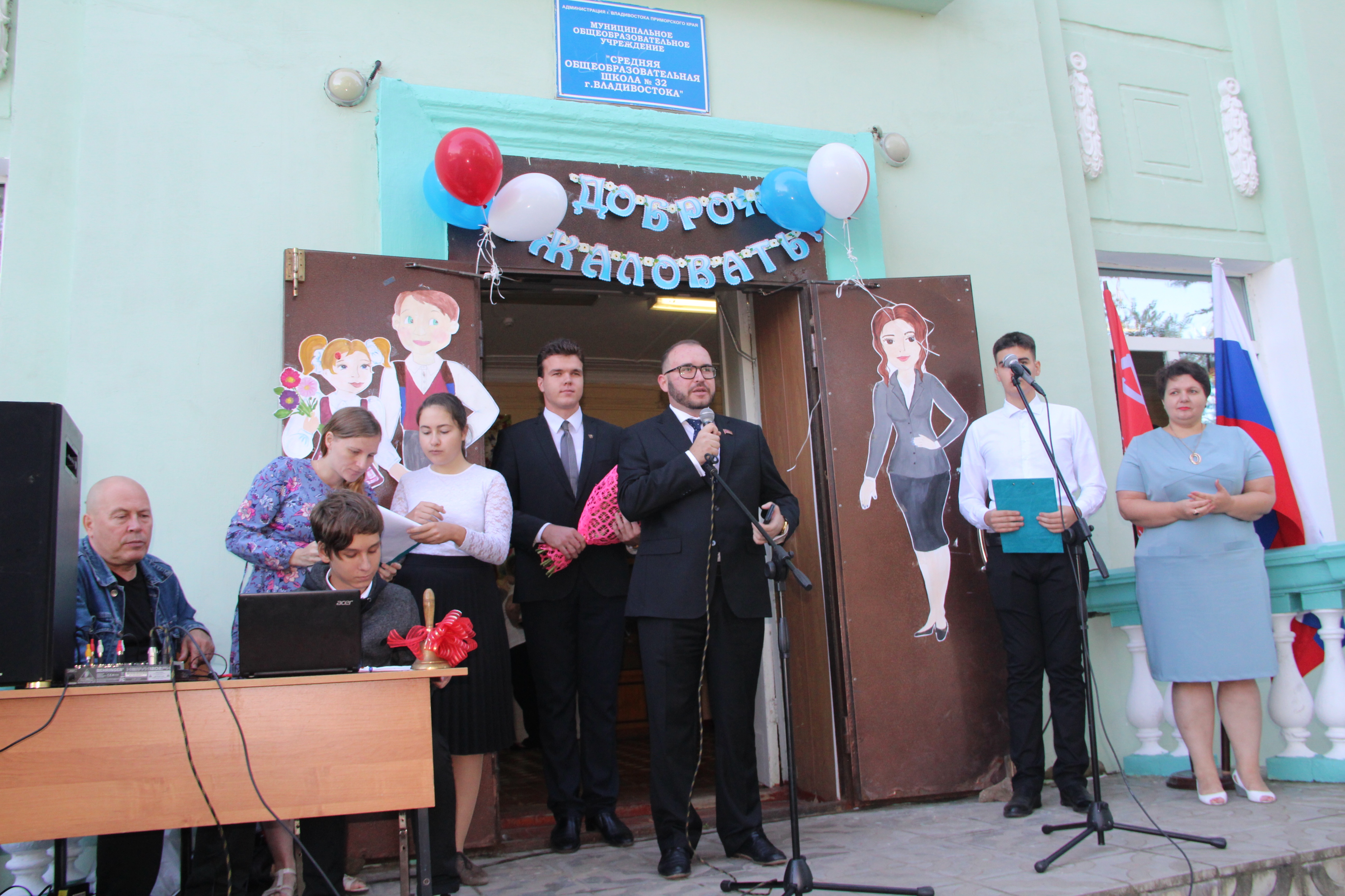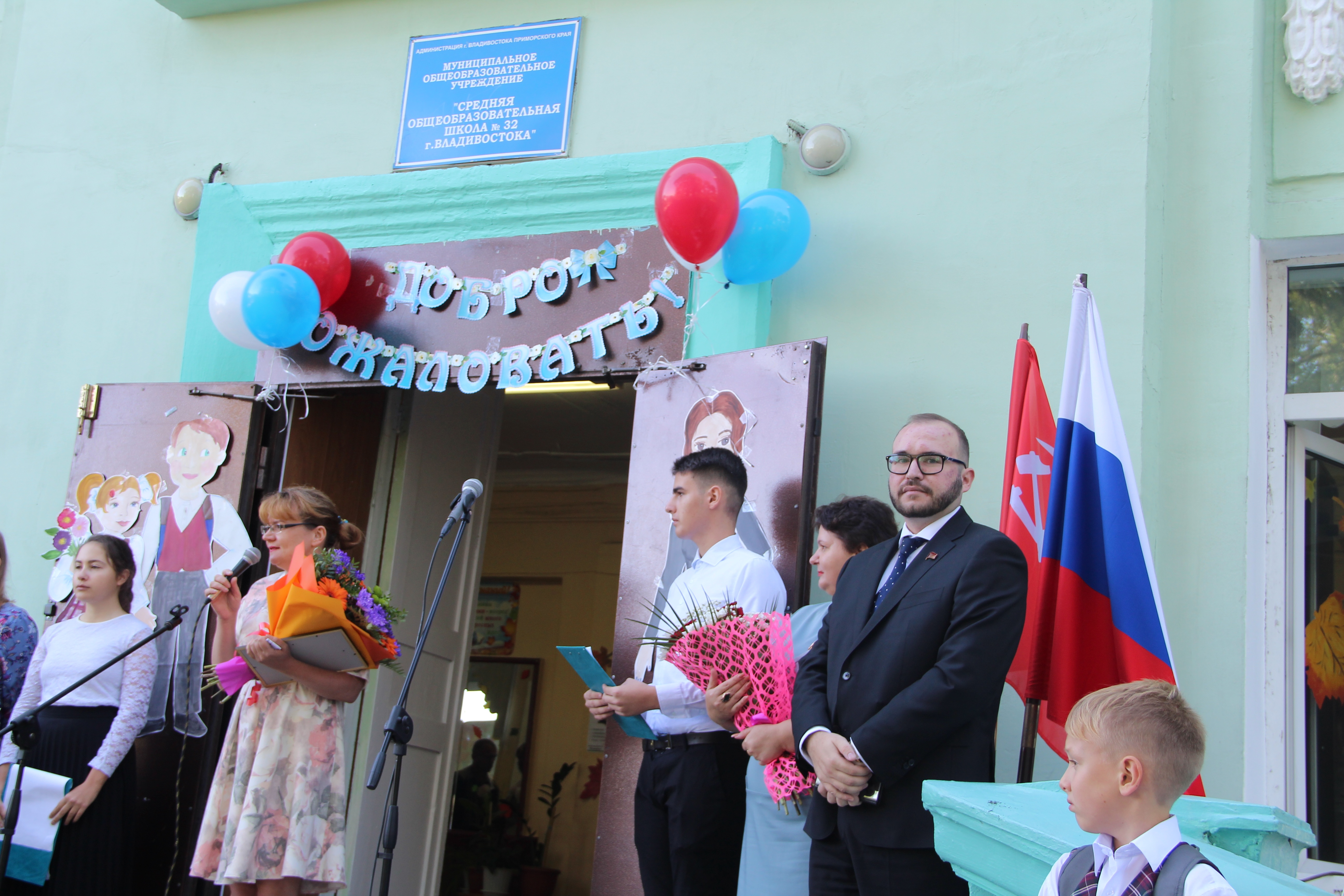 1-ого сентября, в День знаний, руководитель фракции КПРФ в Законодательном собрании Приморского края А.Н. Долгачев, совместно с членами Владивостокского отделения ЛКСМ, посетили среднюю школу №32 г.Владивостока.