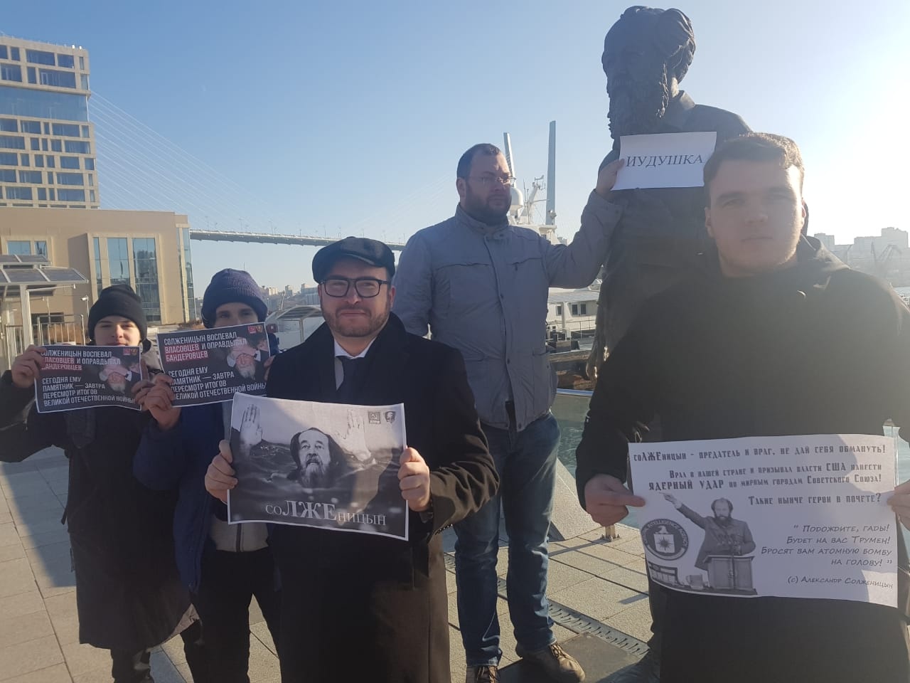 Комсомольцы Владивостока в рамках всероссийской акции против протеста против возвеличивания памяти А.И. Солженицина, размещения его произведений в школьных программах по литературе.