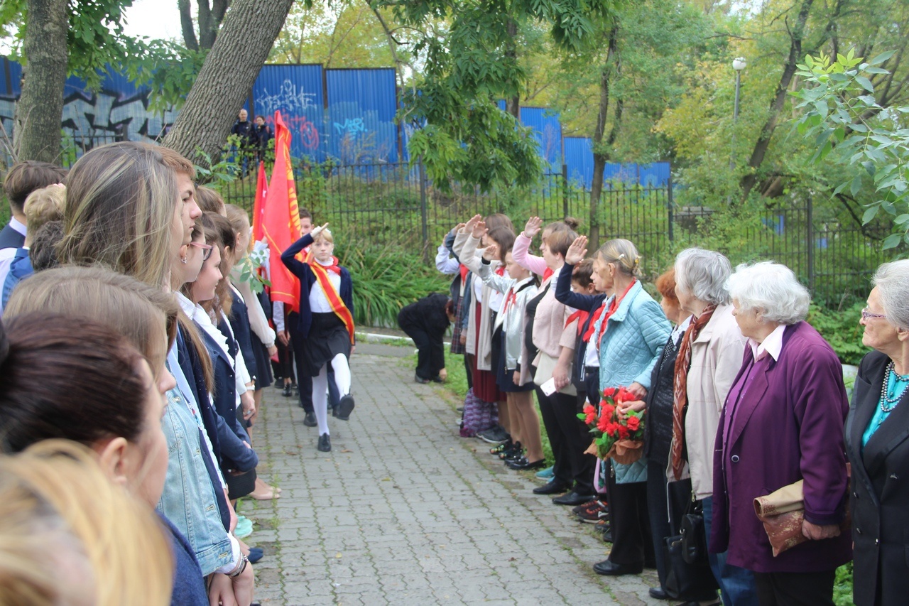 Автопробег проходил в Владивостоке с посещением комсомольских памятников города. Первым был посещен памятник герою-комсомольцу - Елизавете Чайкиной, расположенный во дворе школы №13. Пионерами была проведена торжественная линейка, которая была открыта под звуки Советского гимна, а в ходе линейки была рассказана история Лизы Чайкиной, и были прочитаны стихи посвященные ее подвигу.