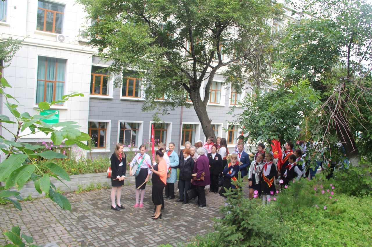 После, автопробег отправился в район остановки Авангард , где вновь под звуки Советского гимна, была проведена торжественная линейка у памятника посвященного первым комсомольцам Тихоокеанского флота. Пионерами была рассказана история создания комсомольской организации на флоте, жизнь, труд и подвиги комсомольцев-тихоокеанцев на фронтах Великой Отечественной войны.