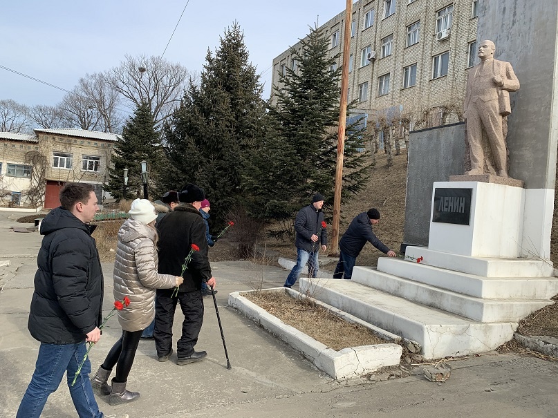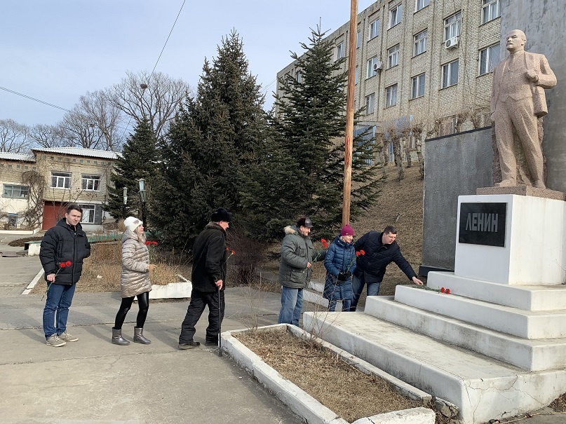 В этот же день активисты Большекаменского местного отделения КПРФ возложили цветы к памятнику Владимиру Ильичу Ленину (на фото).