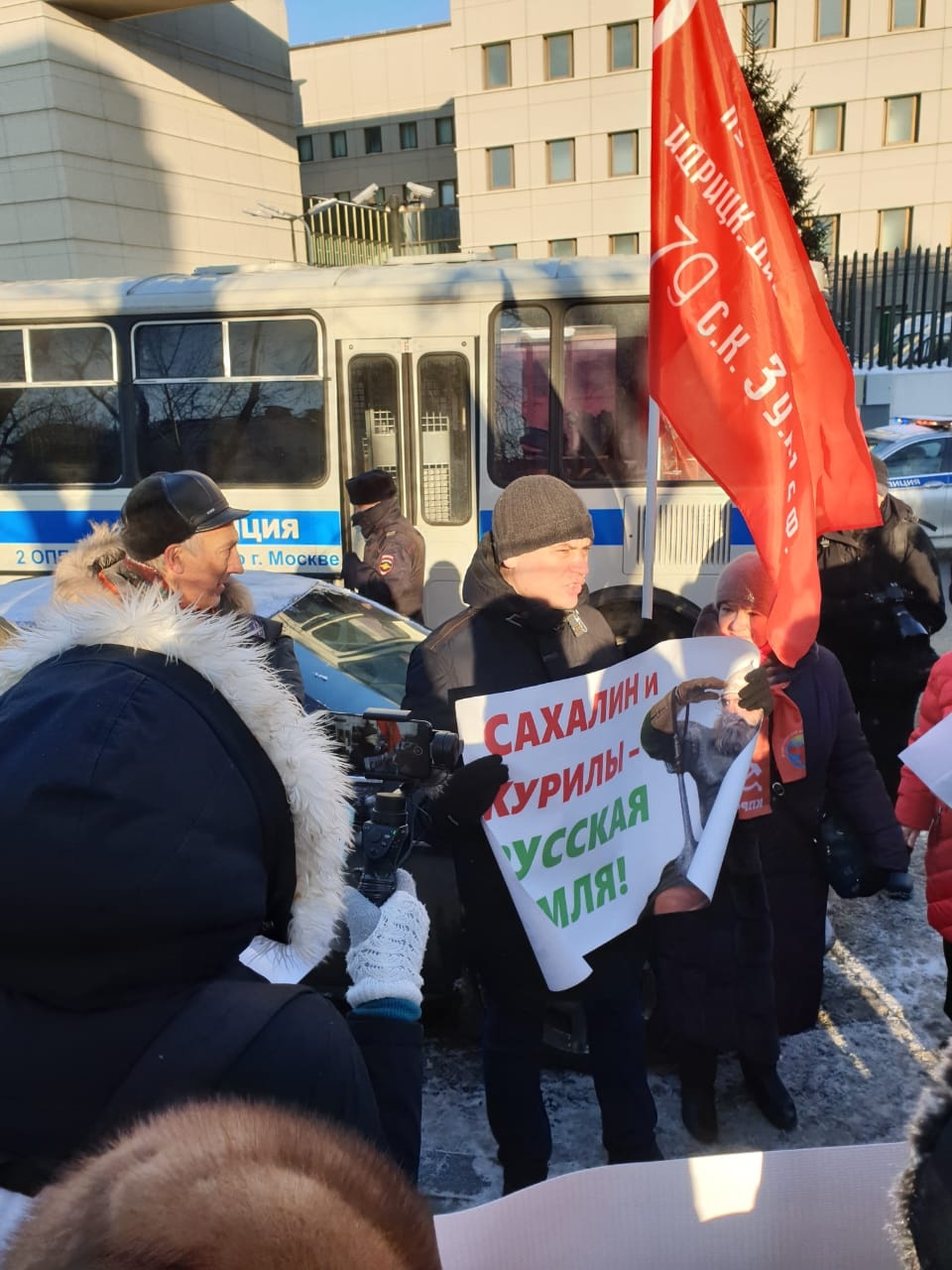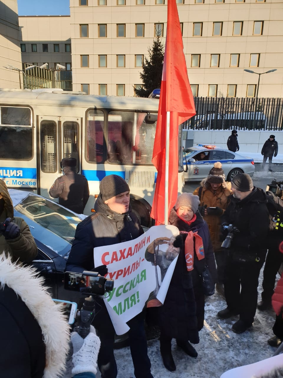 Сегодня, 22 января 2019 года, на встрече с депутатами ГосДумы от КПРФ у стен японского посольств в Москве полиция произвела незаконные задержания протестующих против национального предательства и сдачи Курил японцам.
