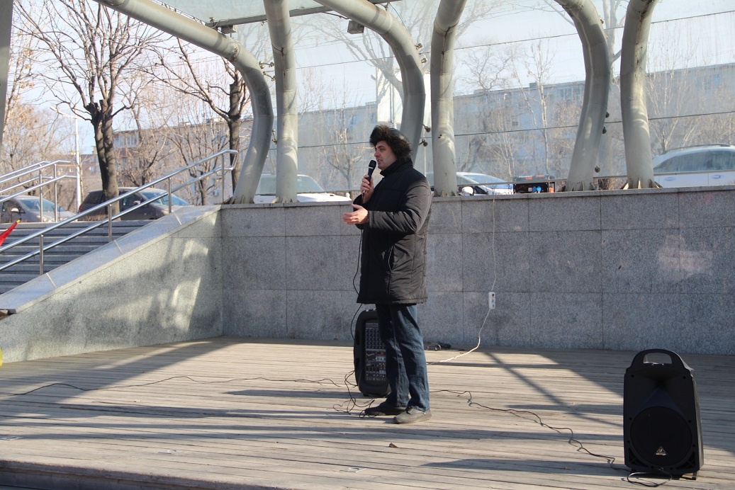 Митинг был открыт выступлением первого секретаря Владивостокского горкома КПРФ, депутата ЗС ПК Артема Самсонова. Он призвал жителей по улицам Надибаидзе и Херсонской высказать их позицию на митинге по поводу стройки. Сам митинг – и нес в себе цель привлечения через СМИ внимания городских и краевых властей к данной проблеме жителей Владивостока.