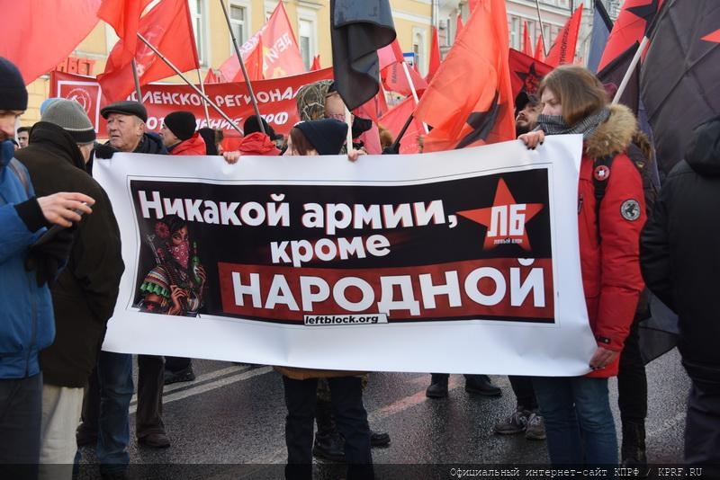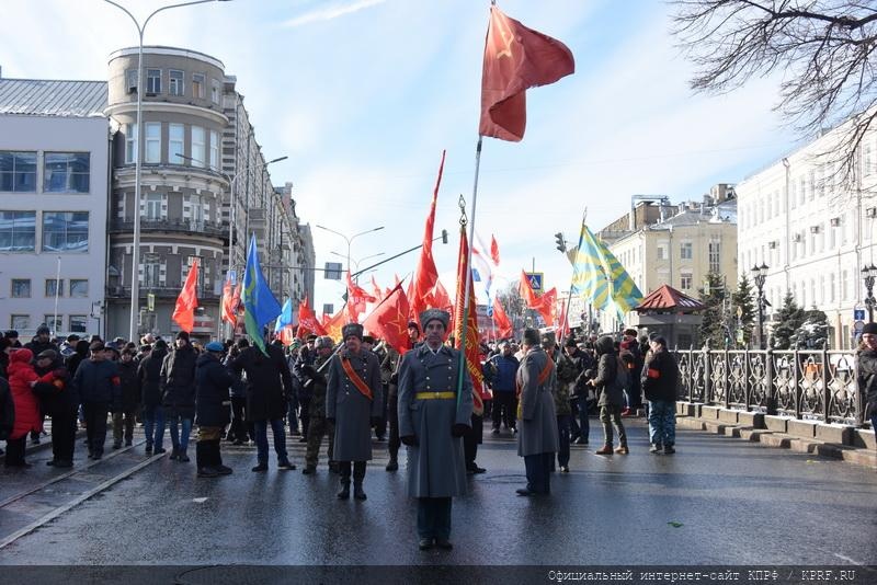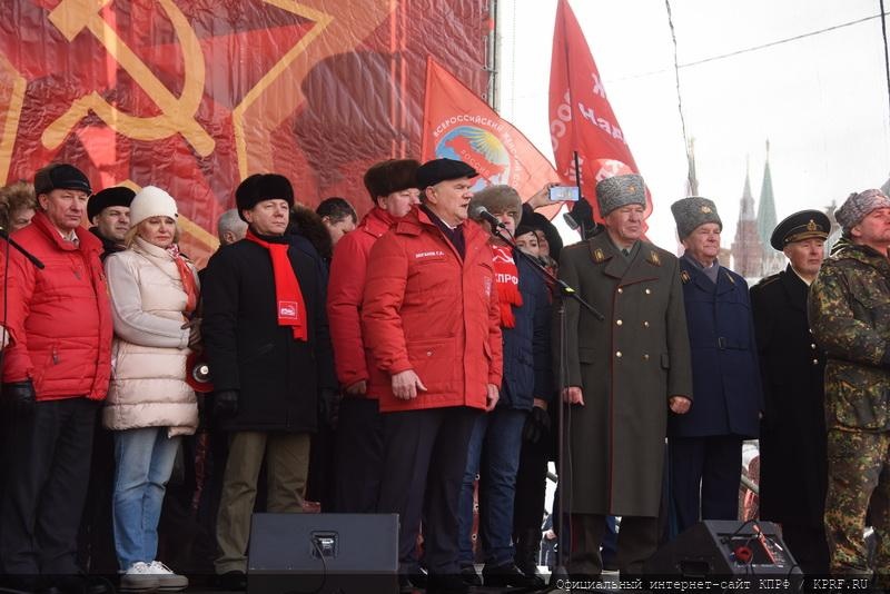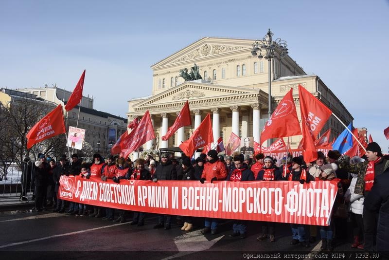 23 февраля в Москве, в ознаменование 101-й годовщины со дня создания Красной Армии и Военно-Морского флота, состоялись шествие и митинг. Ведущим митинга на площади Революции был член ЦК КПРФ, депутат Госдумы 6-го созыва В.Р. Родин. Перед участниками акции выступил Председатель ЦК КПРФ, лидер Народно-патриотических сил России Г.А. Зюганов.
