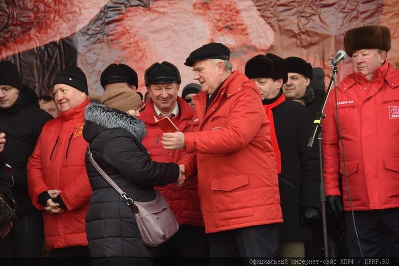 После этого лидер российских коммунистов Г.А. Зюганов вручил партийные билеты молодому пополнению КПРФ.