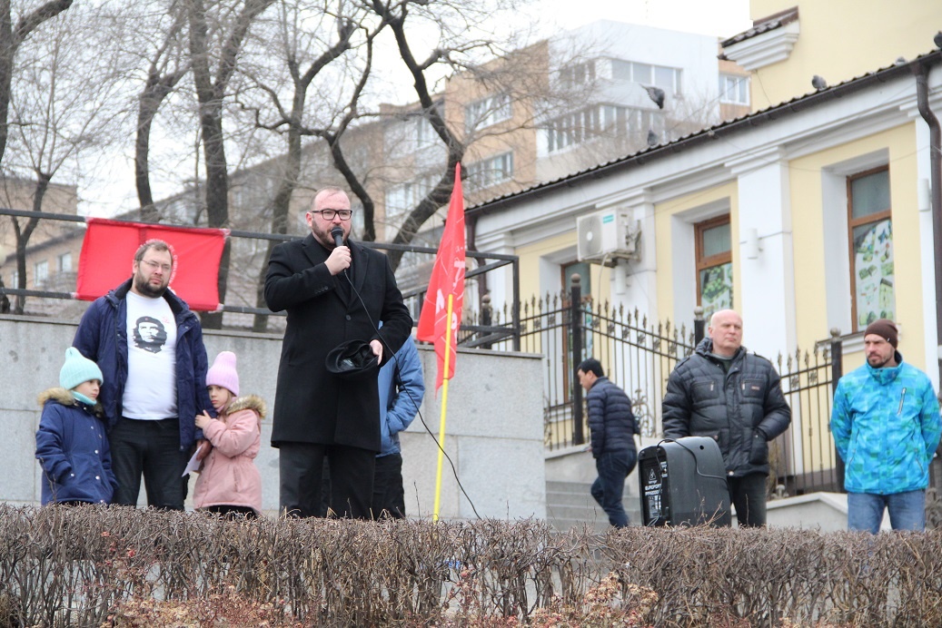 В поддержку собравшихся выступил первый секретарь краевого Комитета КПРФ, руководитель фракции КПРФ в Законодательном Собрании Приморского края Анатолий Долгачев: «Проблемы угольной пыли, уничтожения скверов и точечной застройки перед жителями края появились не вчера, и эта акция протеста уже не первая. И меня бросает в ярость, когда я вижу абсолютное безразличие власти и чиновников к проблемам людей! Зеленые скверы – вырубить, детскую площадку – снести, построить дом, а лучше два, уничтожить экологию района – это они могут, а снести разваливающиеся бараки на Херсонской и людей расселить – этого они не могут! Люди! Пока нас здесь стоит сто, двести, они будут отмахиваться от нас как от назойливых мух – им неприятно, но не критично. Но когда нас выйдет тысяча, пять тысяч, вот тогда с нашим мнением им придется считаться! Призываю вас звать всех, кого сможете, на следующий митинг 23 марта! Выскажем власти свое мнение, покажем им, что мы не безмолвны, и что с нашим мнением нужно считаться!».
