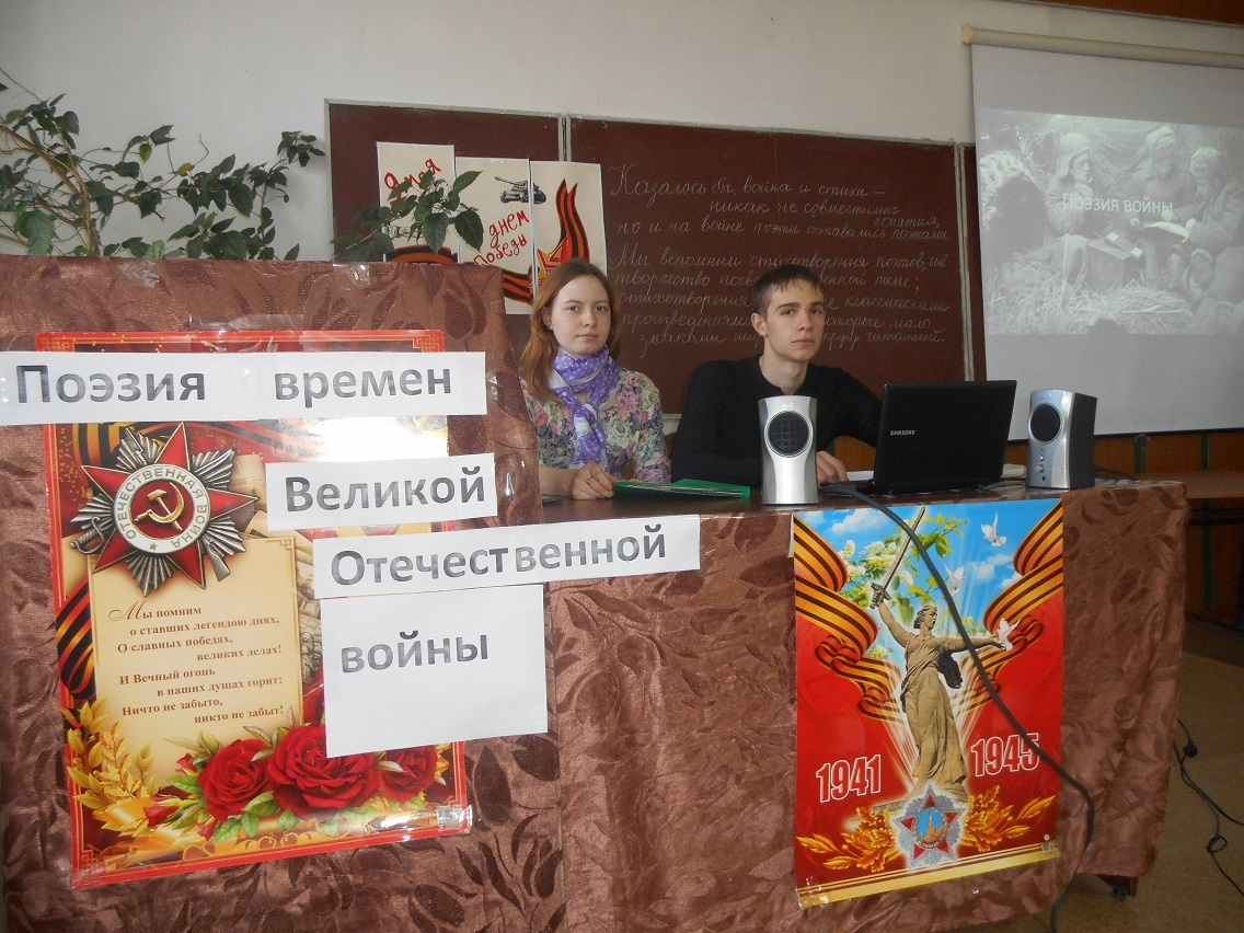 Ребята ознакомились с короткими, трагическими биографиями молодых поэтов – Евгения Петрова, Георгия Суворова, Михаила Кульчицкого, Всеволода Багрицкого, Павла Когана, Иосифа Уткина, Леонида Вилкомира, Алексея Лебедева, Мусы Джалиля и их стихами, «оборванными пулей». Непохожие внешне, имеющие разные довоенные судьбы, поэты были близки в главном – любви к родной земле, к Советской Родине.