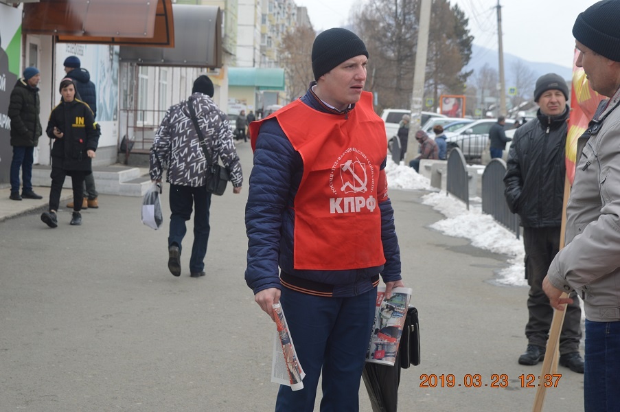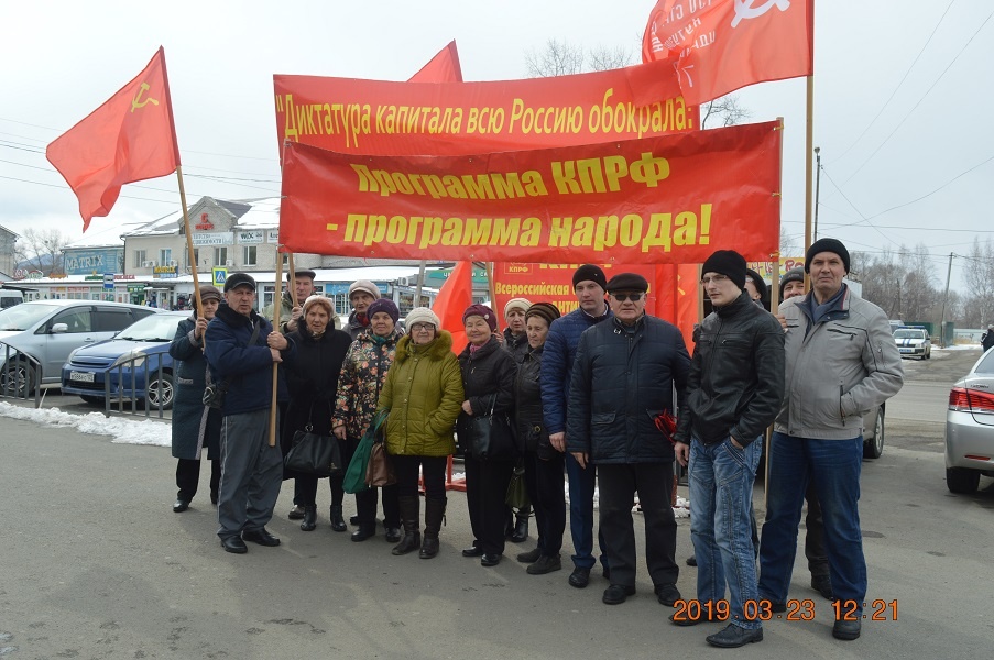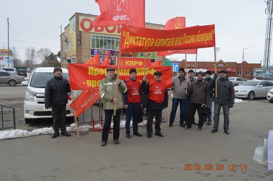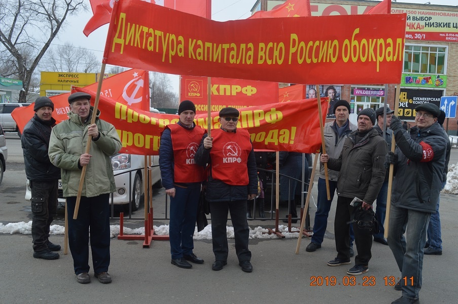 Коммунисты Арсеньевского местного отделения КПРФ провели публичное мероприятие – пикет, в рамках Всероссийской массовой общественно-политической акции под лозунгом «Защитим социально-экономические права граждан!». В пикете приняли участие более тридцати человек – коммунисты, комсомольцы, сторонники партии из городского отделения «Дети войны». Пикетчики раздали жителям города более двух тысяч газет «Правда Приморья» и информационного бюллетеня Арсеньевского МО КПРФ «За трудовой Арсеньев».