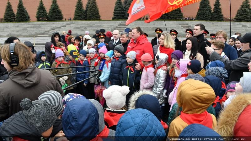 В Мавзолее лежит тело вождя мирового пролетариата Владимира Ильича Ленина. Мы подходили к могиле И.В. Сталина. Он с вашими прадедами и прабабушками обеспечил Победу в Великой Отечественной войне и сегодняшнее мирное небо над нашей головой.
