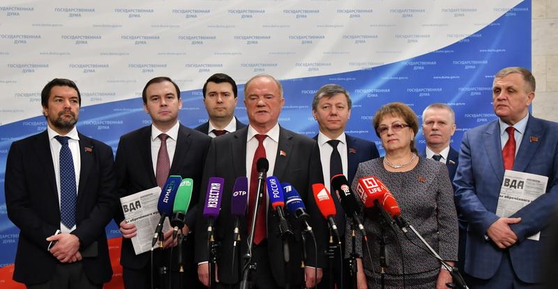 «Сегодня в Госдуме состоится отчет Правительства Российской Федерации о результатах его деятельности за 2018 год. Вчера в «Правде» и «Советской России» мы опубликовали итоги их «работы». Называется статья «Плоды обреченного курса». Я надеюсь, что вы прочитаете эти материалы», - сказал, обращаясь к журналистам, Г.А. Зюганов.